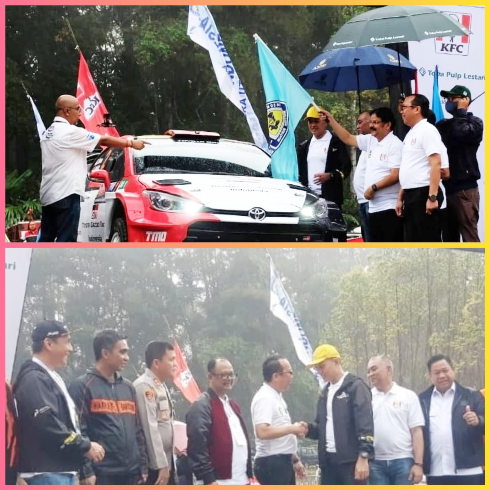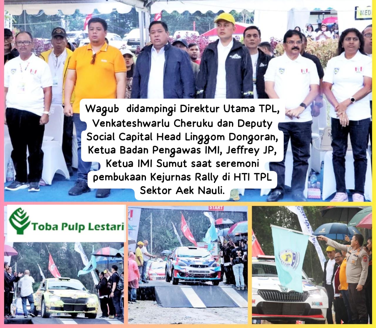Opening Ceremonial start Kejuaraan Nasional KFC Danau Toba Rally 2023, dilaksanakan di halaman depan kantor Toba Pulp Lestari (TPL) Sektor Aek Nauli Kabupaten Simalungun dan disaksikan Direktur Utama TPL, Venkateshwarlu Cheruku, Jumat (23 Juni 2023).