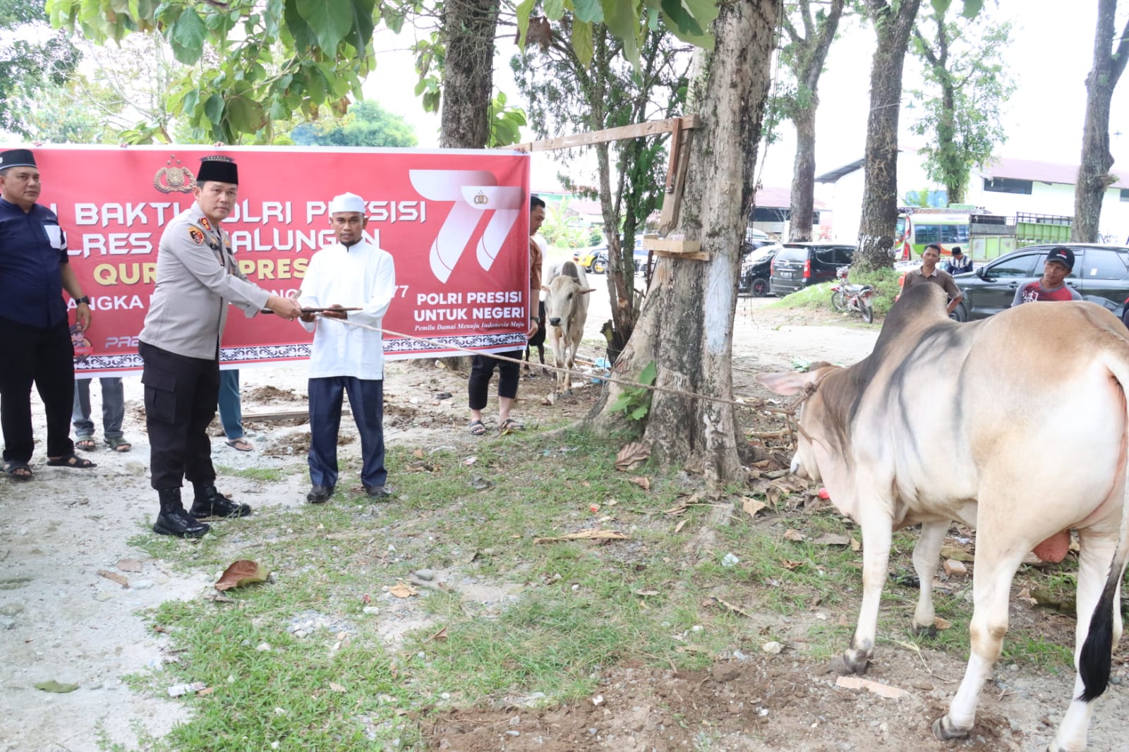Kapolres Simalungun AKBP Ronald F.C Sipayung, S.H., S.I.K., M.H., menekankan bahwa kegiatan Qurban Presisi ini adalah bentuk nyata dari implementasi tema “Idul Adha Menanamkan Nilai Nilai Kepatuhan dan Moralitas Guna Mewujudkan Polri yang Presisi”.