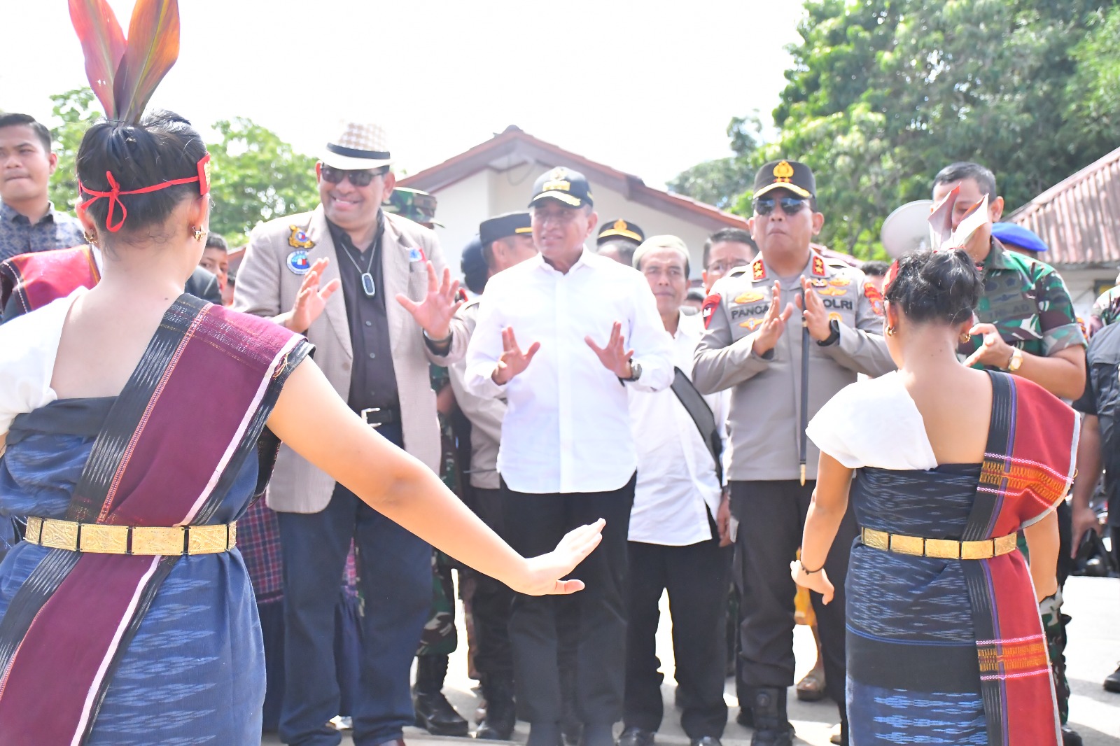 Rombongan disambut Forkopimda Sumatera Utara yang tiba Pantai Ikan Mas Tandarabun Desa Dosroha Kec. Simanindo Kab. Samosir dalam rangka melaksanakan kunjungan kerja untuk melestarikan budaya dan Identitas bangsa dalam kegiatan Pesta Syukuran PARNA Indonesia.