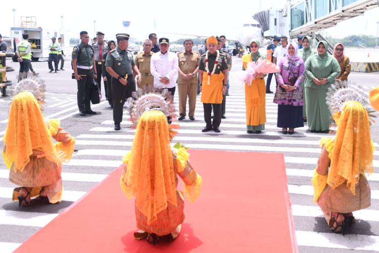 Bersama Forkopimda Sumut, Edy Rahmayadi menyambut langsung Mayjen Mochammad Hasan di Gedung VIP Bandara Internasional Kualanamu.