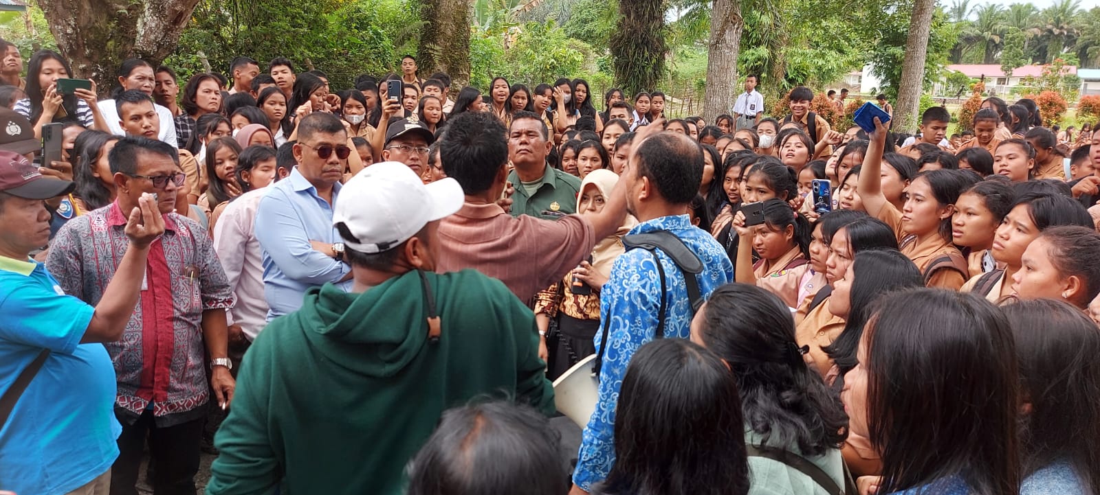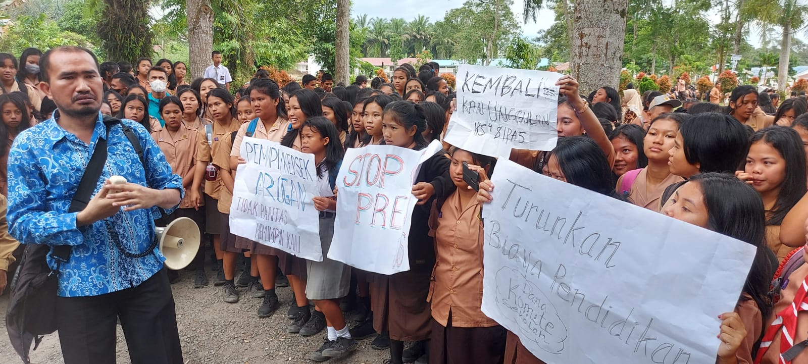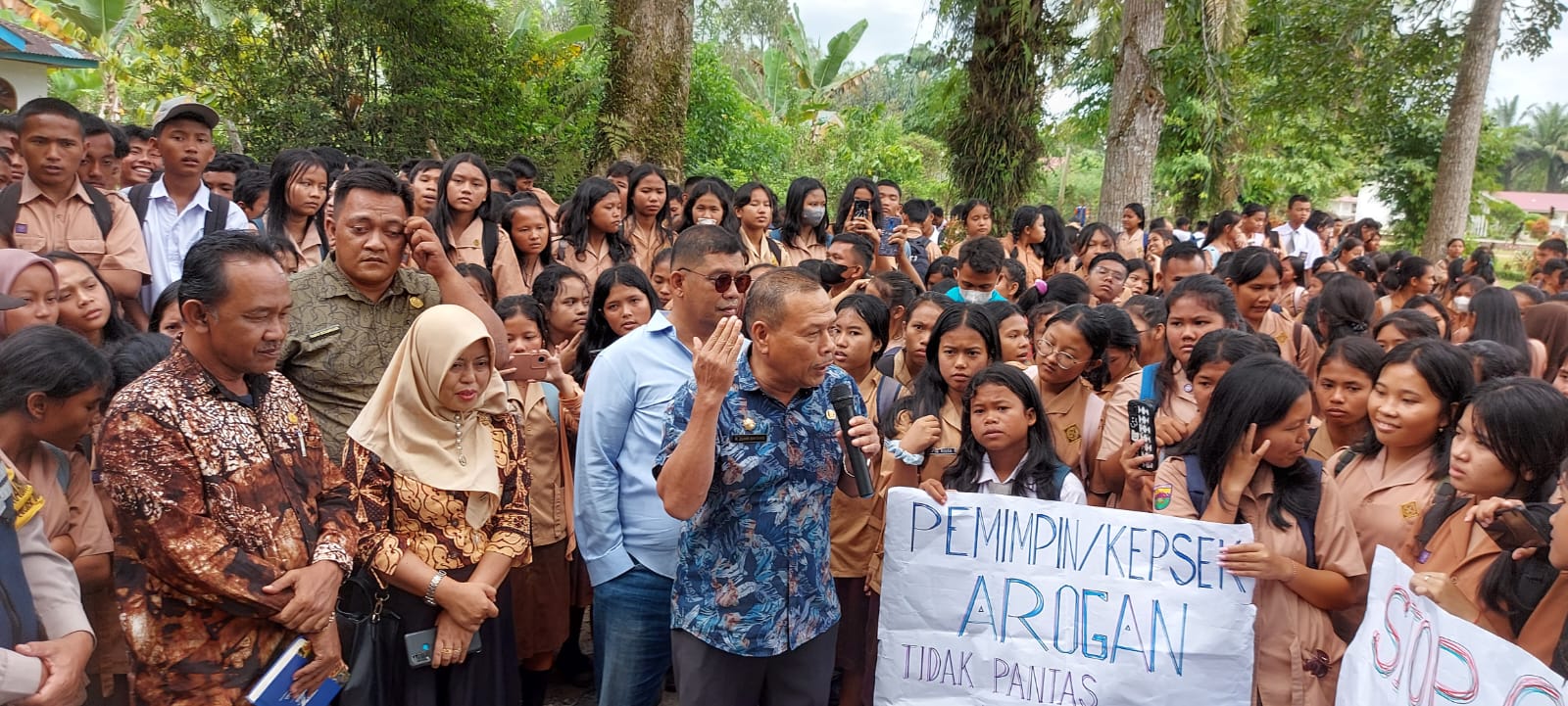Ratusan Siswa/i bersama puluhan Guru senior kompak melakukan aksi demo dengan tuntutan supaya Kepala Sekolah Rismauli Hutabarat yang baru bertugas 1 tahun harus diusir dan segera diganti karena kebijakannya sering diluar kesepakatan dan peraturannya macam-macam serta memberatkan siswa, Ujar mereka.