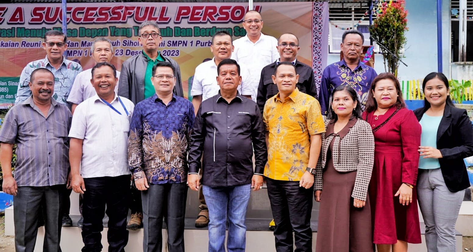 Bupati Simalungun Radiapoh Hasiholan Sinaga menghadiri acara Reuni Akbar yang dirangkai dengan Marsombuh Sihol Alumni SMP Negeri 1 Purba Tiga Runggu, Kecamatan Purba, Simalungun, Sumut, Sabtu (23/12/2023).