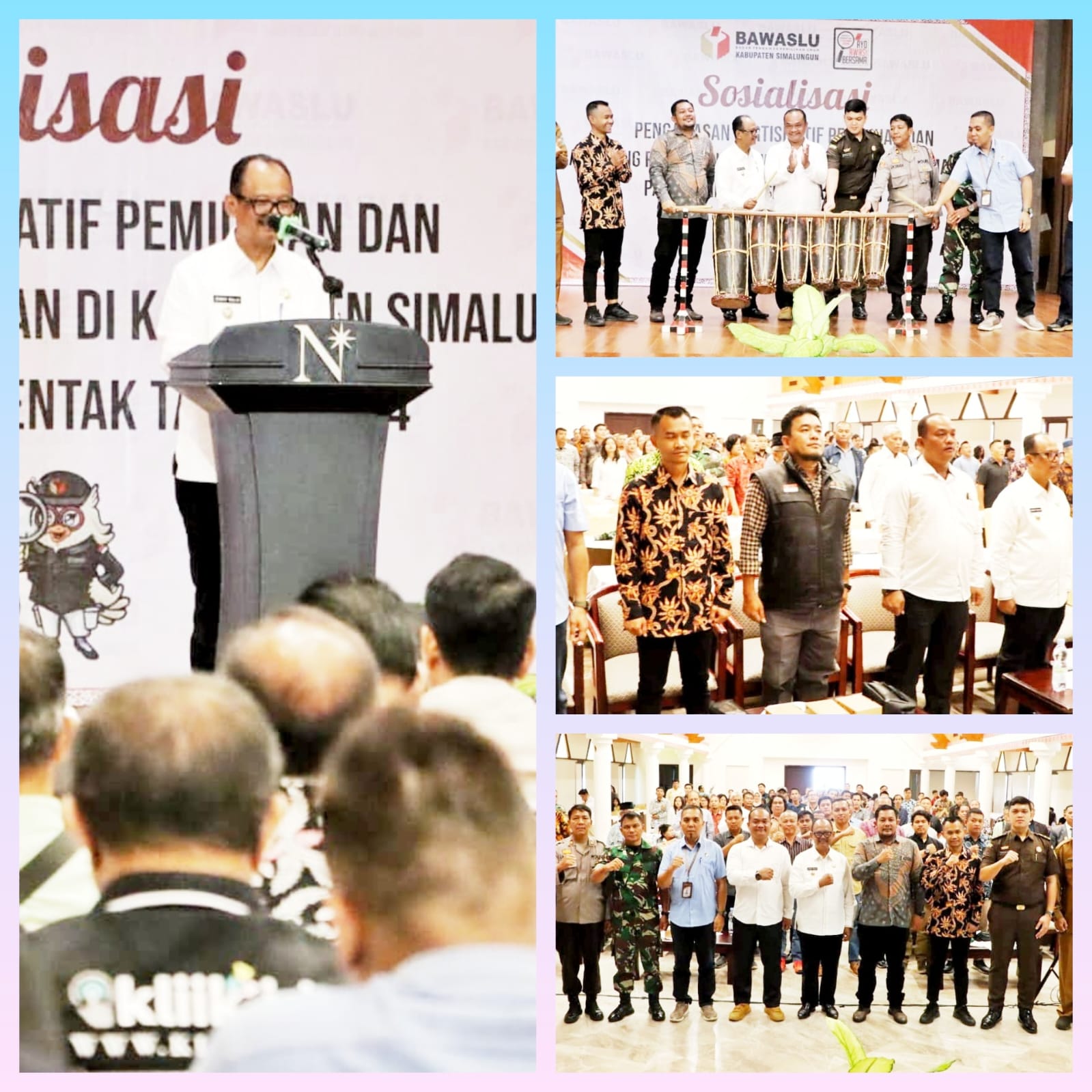 Pelaksana Tugas (Plt) Bupati Simalungun H Zonny Waldi bersama Forkopimda menghadiri Sosialisasi Pengawasan Partisipatif Pemilihan dan Launching Pemetaan Kerawanan Di Kabupaten Simalungun Pada Pemilihan Serentak Tahun 2024.