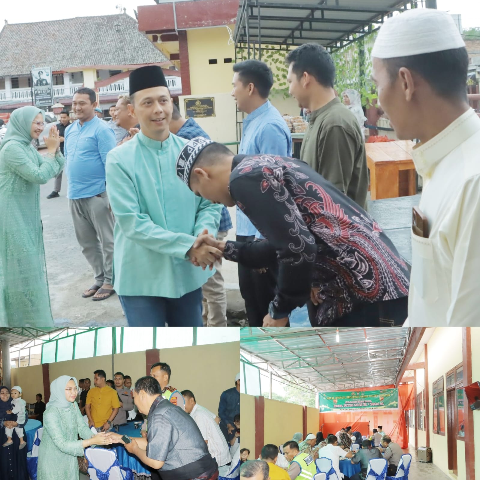 Kapolres Samosir AKBP Yogie Hardiman, S.H.,S.I.K.,M.H, beserta Ketua Bhayangkari Cabang Samosir Ny Widia Hardiman, menggelar acara Halal Bihalal sebagai bagian dari perayaan Idul Fitri 1445 H / 2024, di Selasar Polres Samosir, Jln. Danau Toba, Kel. Pasar Pangururan, Kec. Pangururan, Kab. Samosir (10/04/2024).