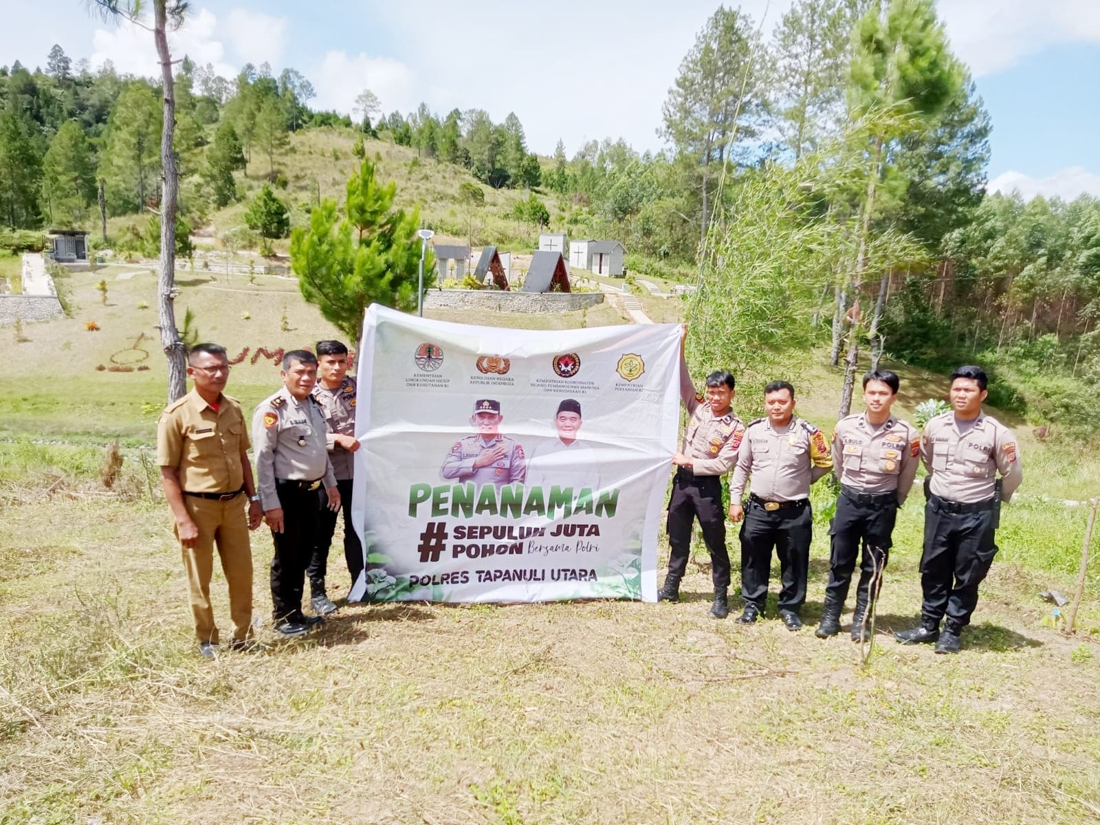 Untuk menjaga dan melestarikan tempat wisata alam Salib Kasih Siatas Barita, Polres Tapanuli Utara melakukan penanaman pohon di sekitaran lokasi wisata tersebut.