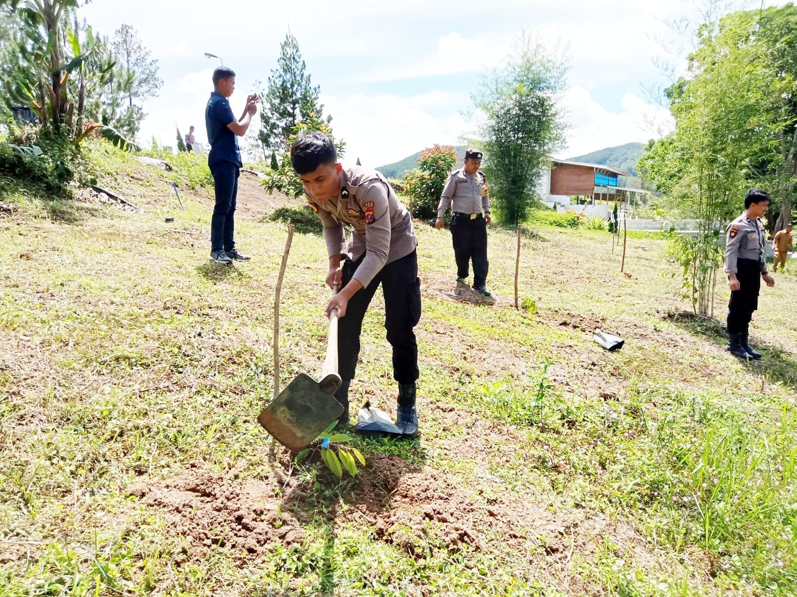 Dipimpin oleh Kabag Ops Kompol K. Simanjuntak S.H, turut di ikuti PJU dan personil Polres serta polsek Sipoholon, penanaman berlangsung dengan singkat dan sederhana.