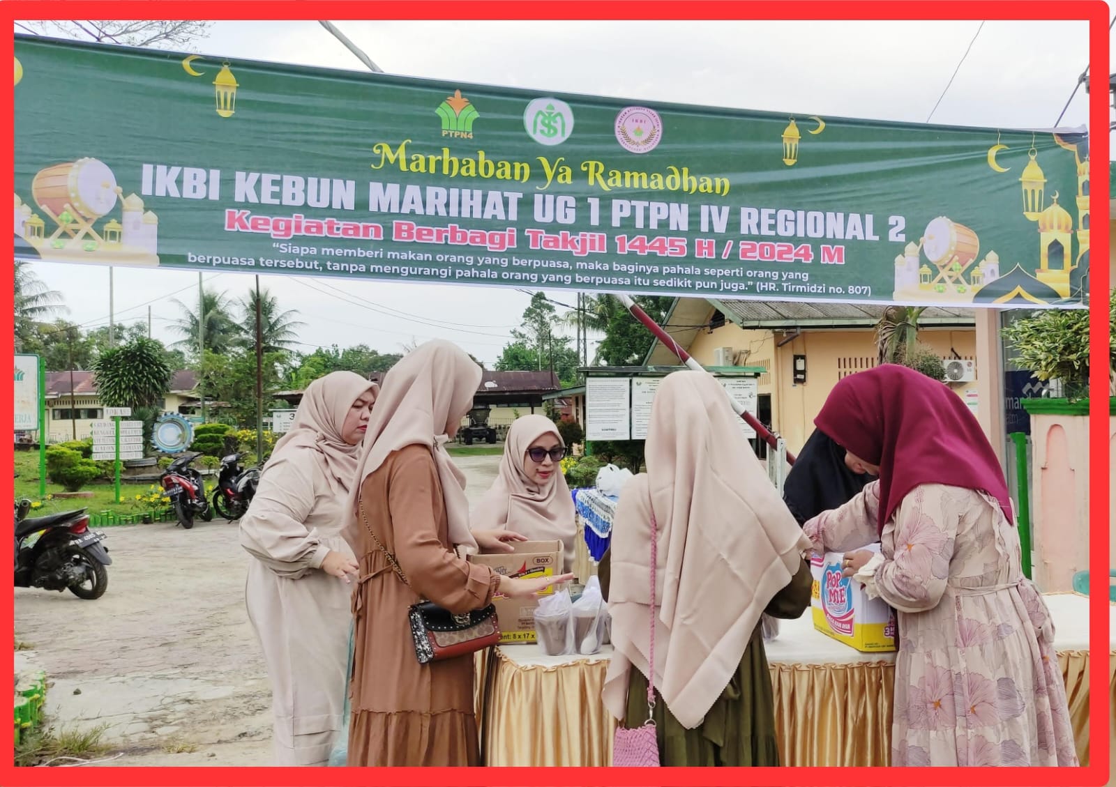 Indahnya berbagi di bulan suci Ramadhan 1445 Hijriah bersama Ikatan Keluarga Besar Istri (IKBI) PT Perkebunan Nusantara IV (PTPN IV) Regional II kebun marihat berbagi Takjil Gratis kepada masyarakat sekitar dan warga yang sedang melintas di depan kantor kebun marihat Kamis 28 Maret 2024 serta menyantuni fakir miskin dan kaum dhuafa di dusun karang keri desa silampuyang.