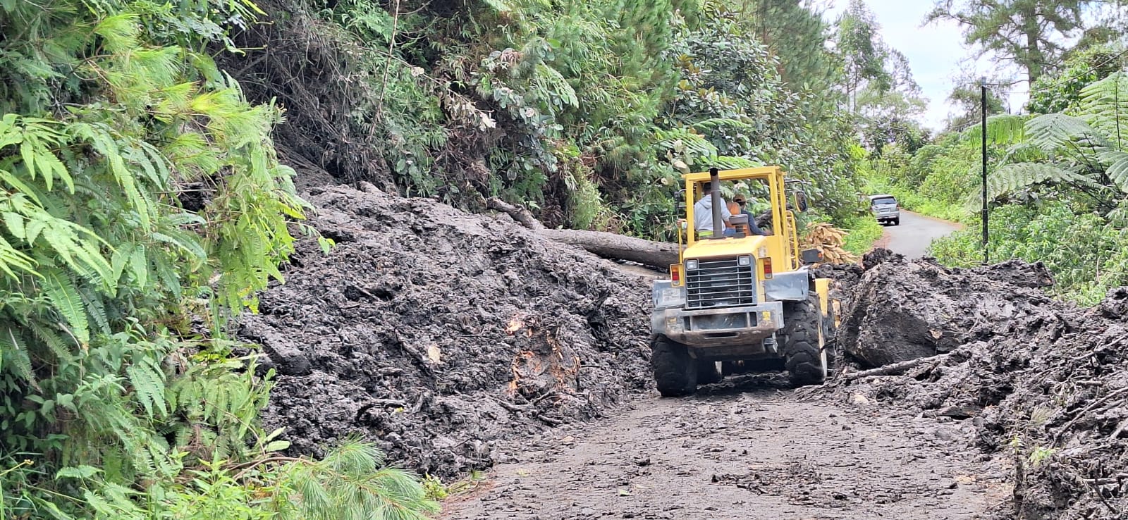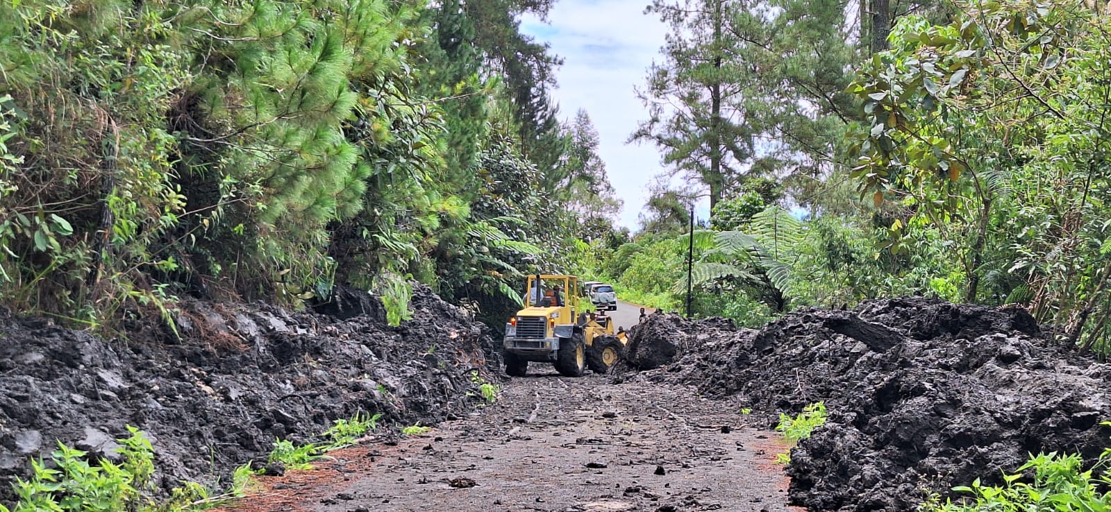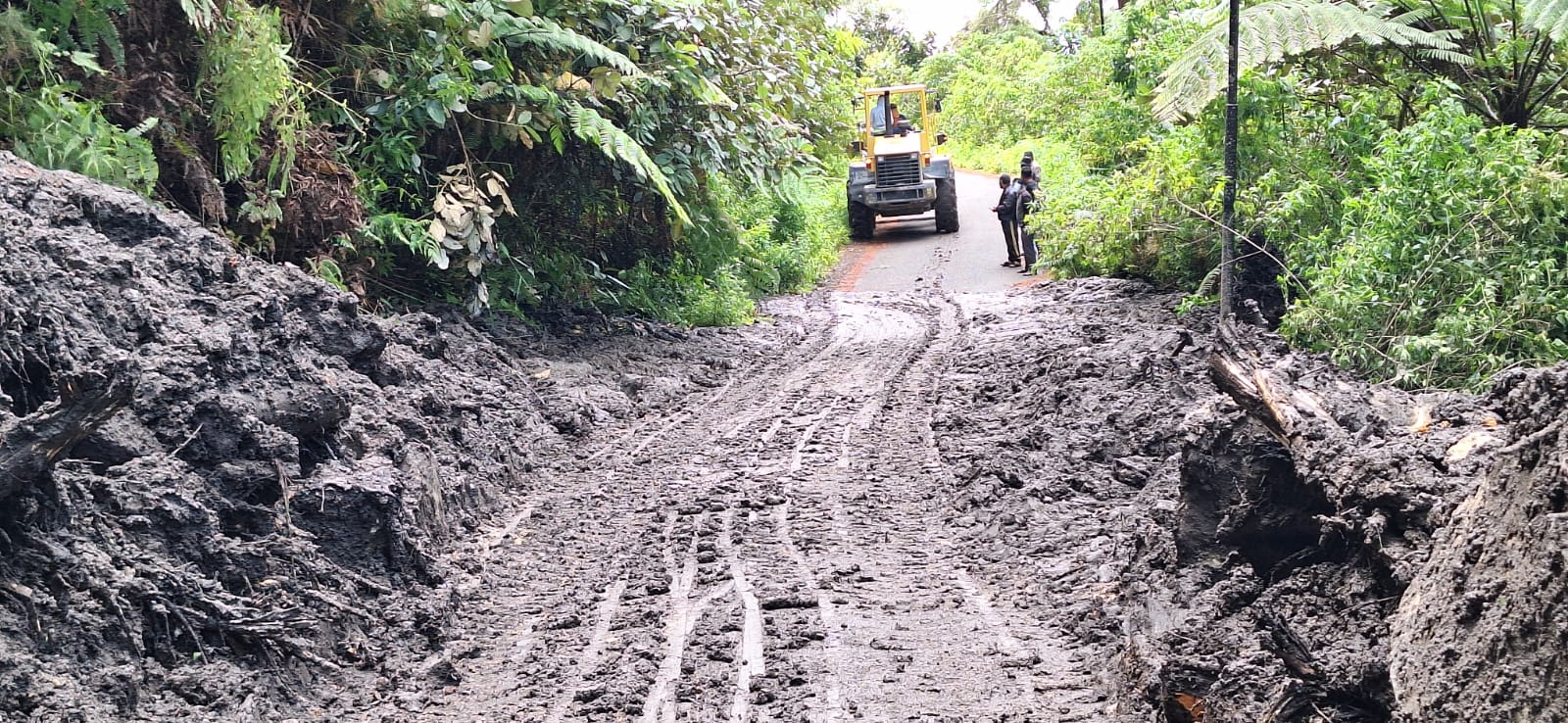 Pekerjaan dimulai dari jam 08.30 malam dan akhirnya dapat menembus tumpukan material yang menutupi semua badan jalan dan sekitar jam 13.00 pagi dan pembersihan dilakukan kembali hingga hari ini.