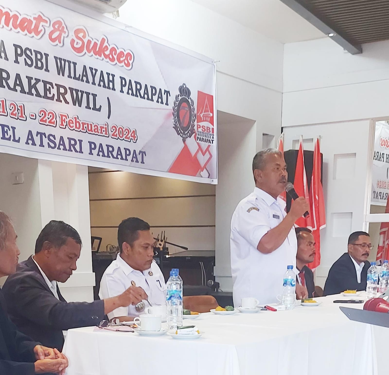 Camat Girsip Oslando Parhusip, saat memberikan sambutannya di Rakerwil PSBI Parapat.