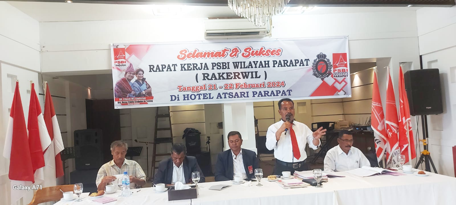 Rapat Kerja Wilayah Punguan Simbolon Dohot Boruna Indonesia (RAKERWIL PSBI) Wilayah Parapat Kecamatan Girsang Sipangan Bolon, Kabupaten Simalungun, dihadiri Kepala Badan Kesatuan Bangsa Dan Politik (Kesbangpol) Kabupaten Simalungun, Arifin Naenggolan SH dan Camat Girsang Sipangan Bolon, Oslando Hariady Parhusip, S.STP.M.M.