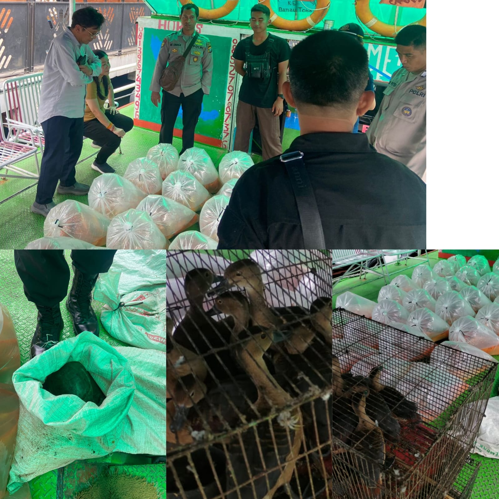 Satuan Kepolisian Perairan (Polairud) Markas Danau Toba bersama Polsek Parapat dan personil Kantor Kesyahbandaran dan Otoritas Pelabuhan Penyeberangan (KSOPP) Danau Toba menggagalkan pelepasan satwa reptil karnivora ke perairan umum Danau Toba, Jumat (29/12/2023).