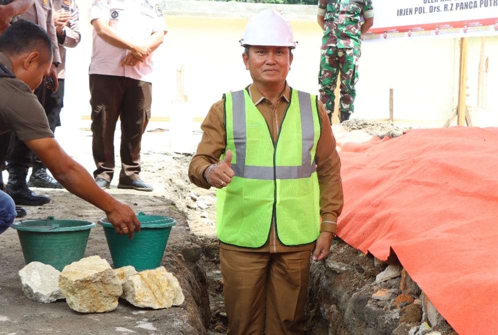 Bupati Simalungun diwakili Sekretaris Daerah (Sekda) Esron Sinaga menghadiri acara peletakan batu pertama pembangunan Markas Kepolisian Sektor (Mapolsek) Parapat di Kecamatan Girsang Sipangan Bolon, Parapat, Simalungun, Sumut, Selasa (11 Juli 2023).