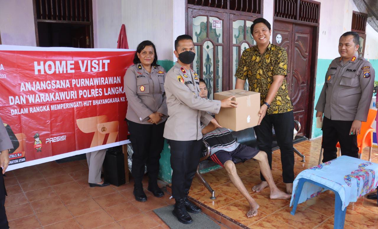 Dalam rangka HUT Bhayangkara ke 77,Kapolres Langkat dan Bhayangkari melaksanakan Anjangsana ke kediaman personil Polres Langkat Aiptu Harvinalson Ginting di Perumahan Kelapa Sawit Kelurahan Perdamaian Stabat,Jumat (16/06/2023) Pukul 14.30.Wib.Aiptu Harvinalson Ginting mengalami sakit menahun.