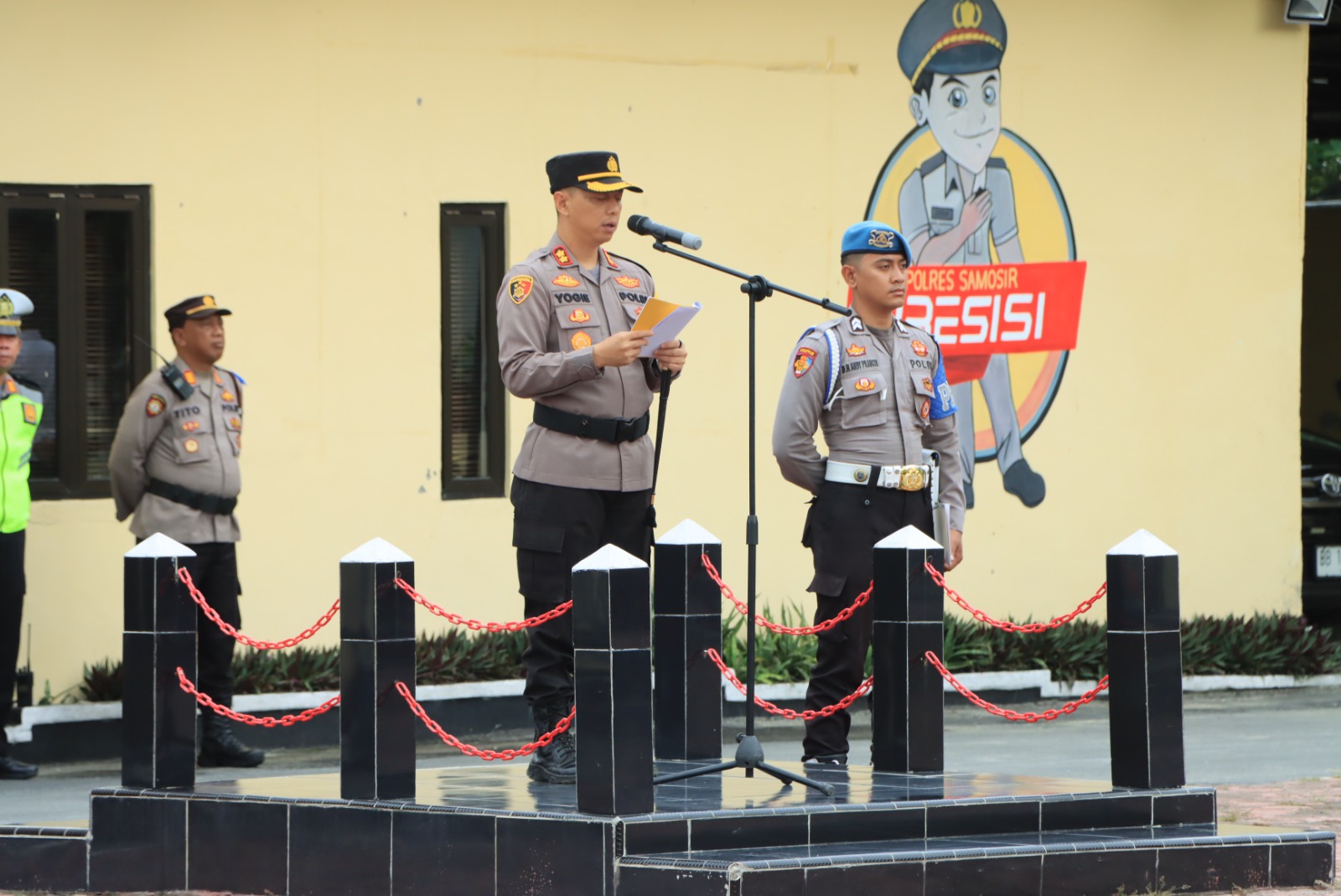 Kapolres Samosir AKBP Yogie Hardiman, S.H., S.I.K., M.H Pimpinan Apel Gelar Pasukan Ops Patuh Toba 2023