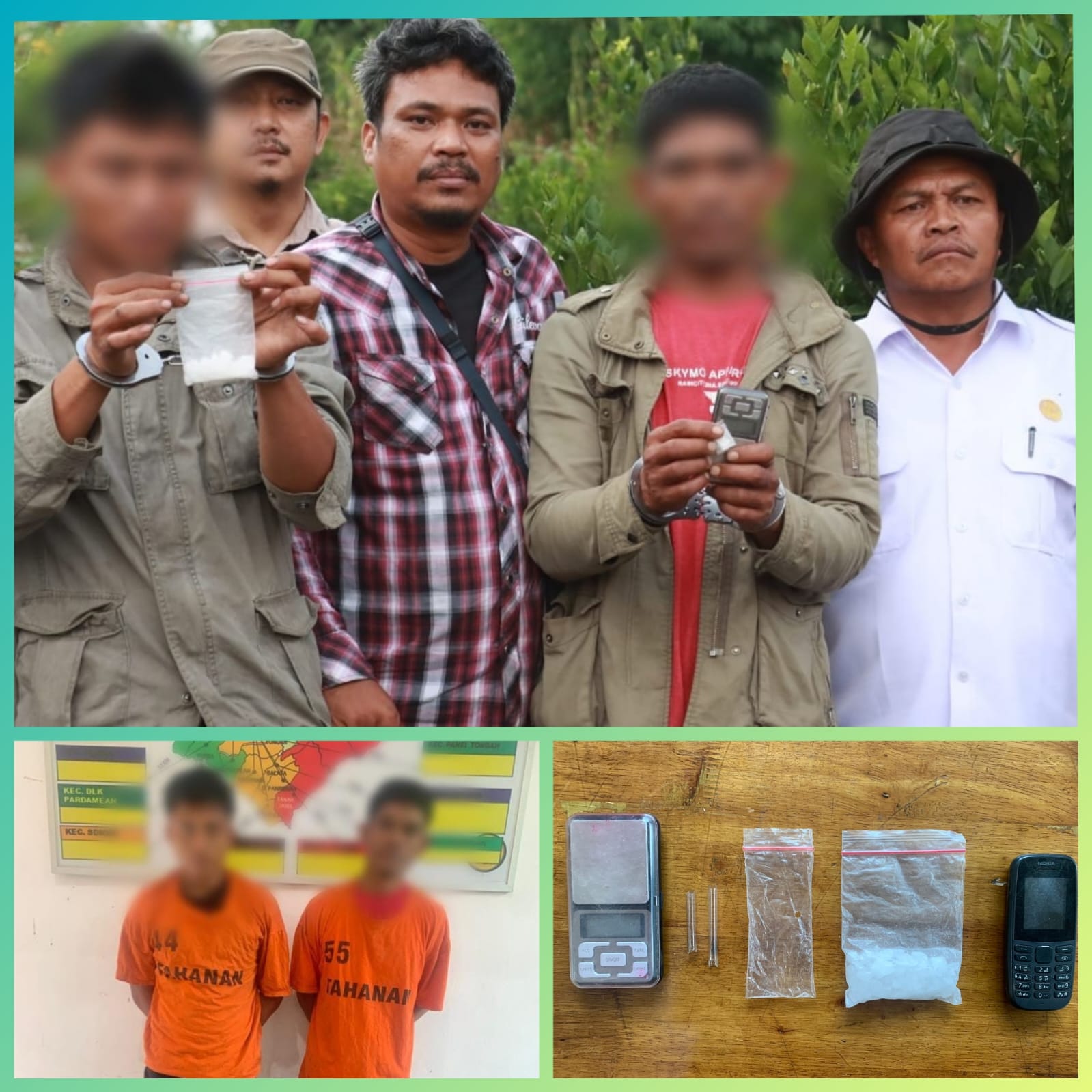 Dalam penggerebekan tersebut, Polres Simalungun berhasil mengamankan dua orang tersangka sebagai pengedar narkotika jenis shabu-shabu. Tersangka pertama adalah “RS” alias Sahdan, seorang petani berusia 39 tahun yang merupakan penduduk Nagori Bandar Saribu. Sedangkan tersangka kedua adalah “AD”, berusia 25 tahun, yang merupakan penduduk Kota Tebing Tinggi.