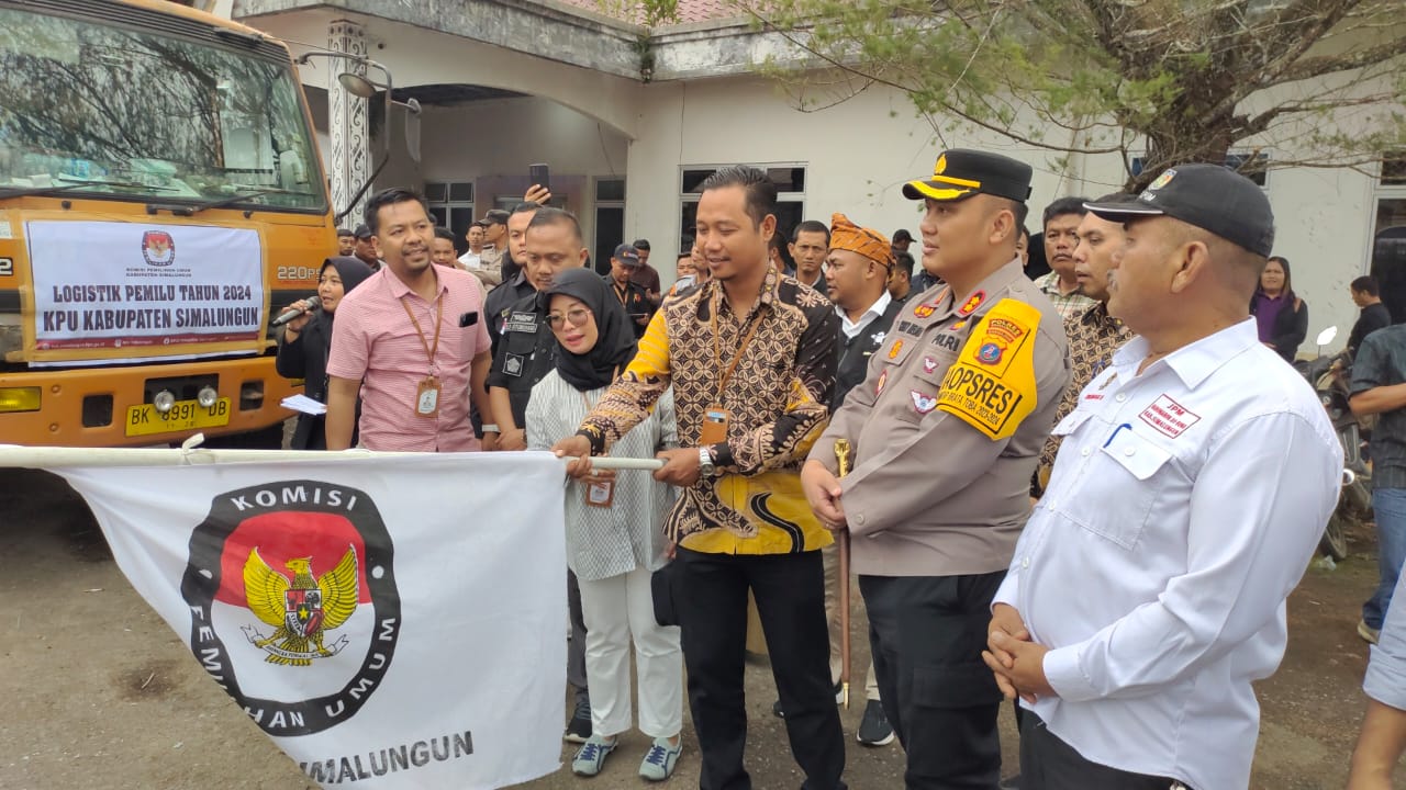 Pelepasan logistik Pemilu oleh Ketua KPU, Kapolres Simalungun, dan komisioner Bawaslu serta Forkopimda Kabupaten Simalungun menjadi penanda dimulainya pergerakan logistik ke seluruh kecamatan di Kabupaten Simalungun. Sebanyak 12 kecamatan menjadi tujuan distribusi pertama dengan pengamanan yang dijaga ketat oleh polisi.