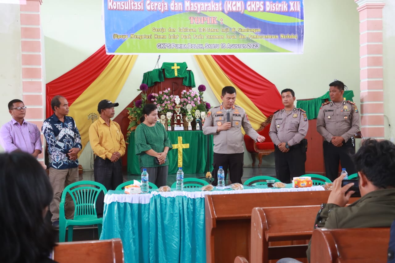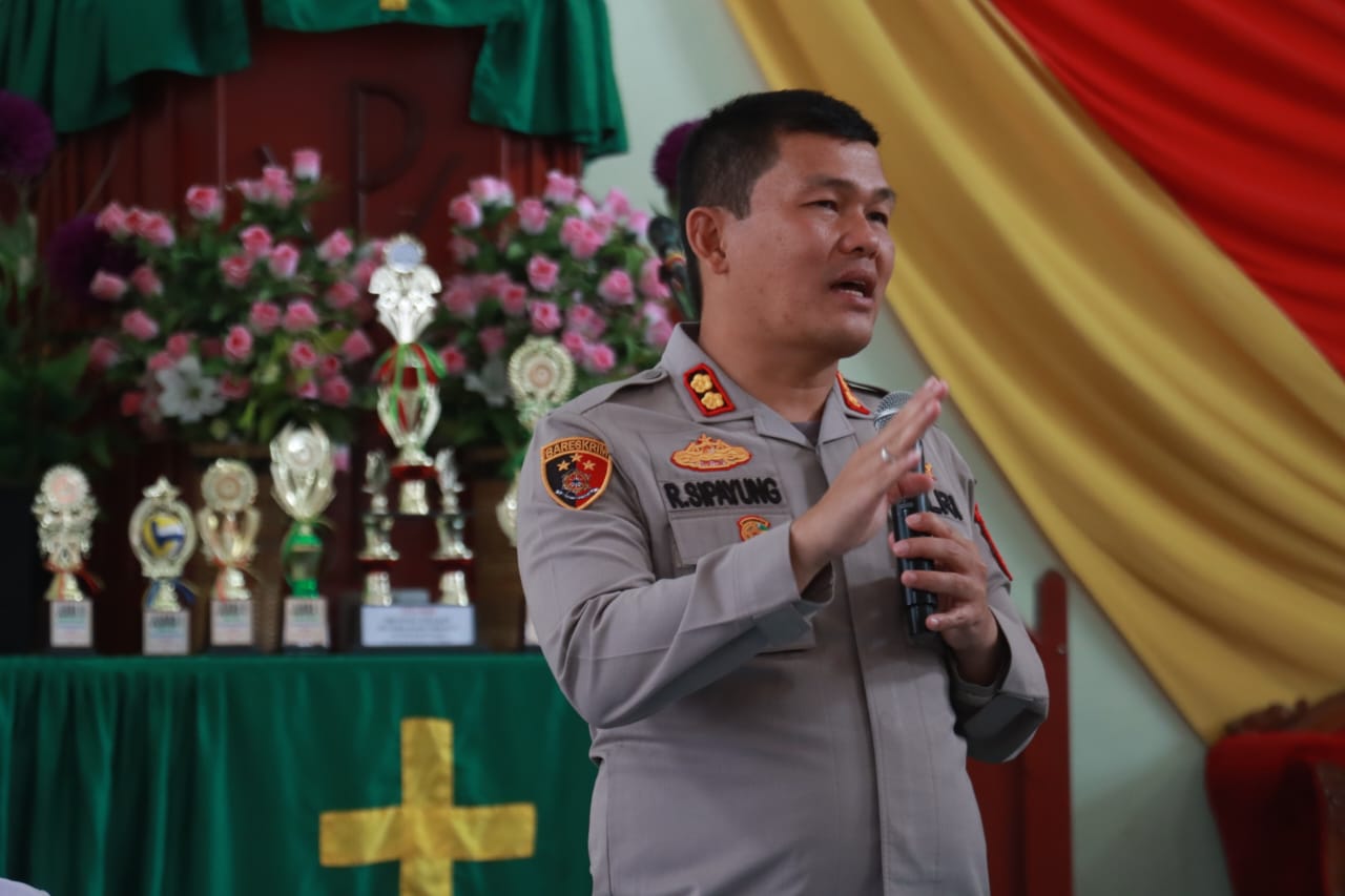 Kapolres Simalungun mengajak jemaat dan masyarakat untuk menjaga keamanan dan ketertiban, serta mempertahankan persaudaraan meski berbeda pilihan politik. Dia juga meminta agar masyarakat terlibat aktif sebagai ‘polisi’ di keluarga mereka masing-masing untuk mencegah kenakalan remaja, penyalahgunaan narkoba, dan melawan orang tua atau guru.