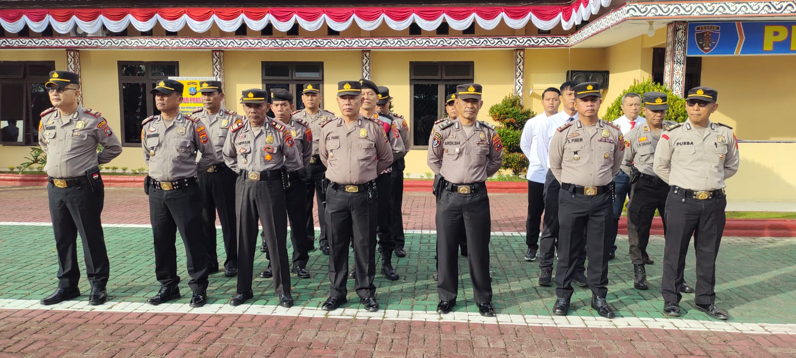 Hadir dalam apel tersebut adalah Wakapolres Simalungun, Kabag Ops Polres Simalungun, Kabag SDM Polres Simalungun, Kabag Log Polres Simalungun, PS.Kabag Ren Polres Simalungun, Kapolsek Tanah Jawa beserta Kapolsek Sejajaran Polres Simalungun, para Kasatfung, Kasie, perwira, brigadir, dan ASN Polres Simalungun.