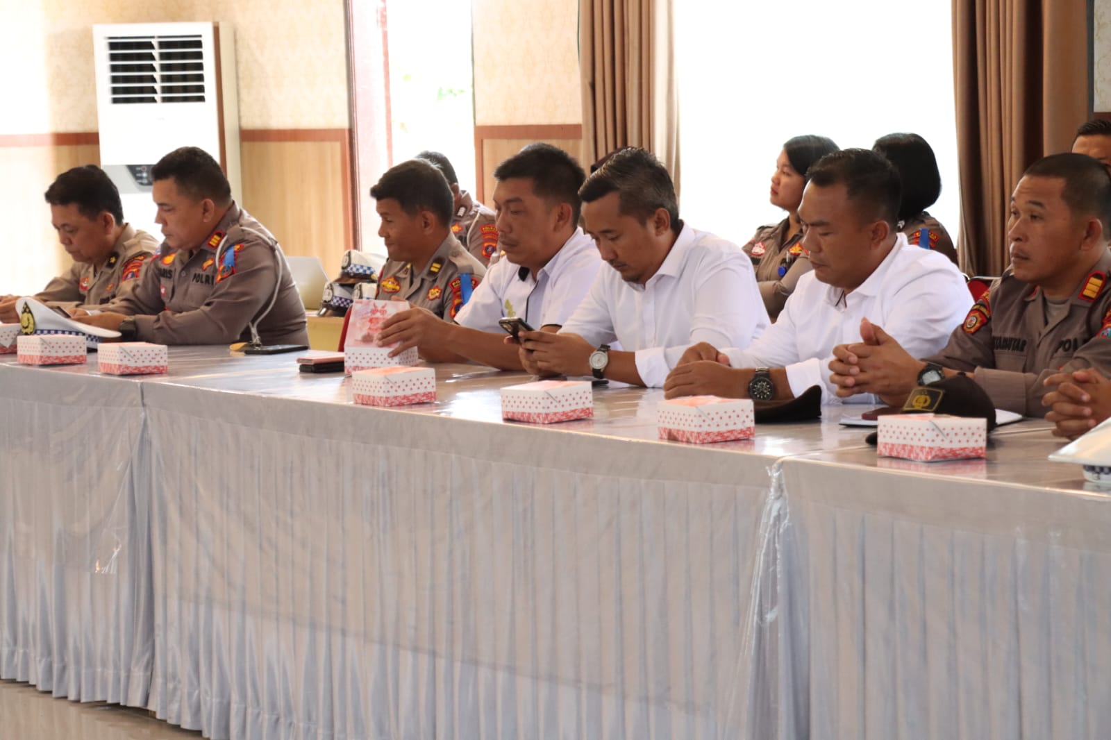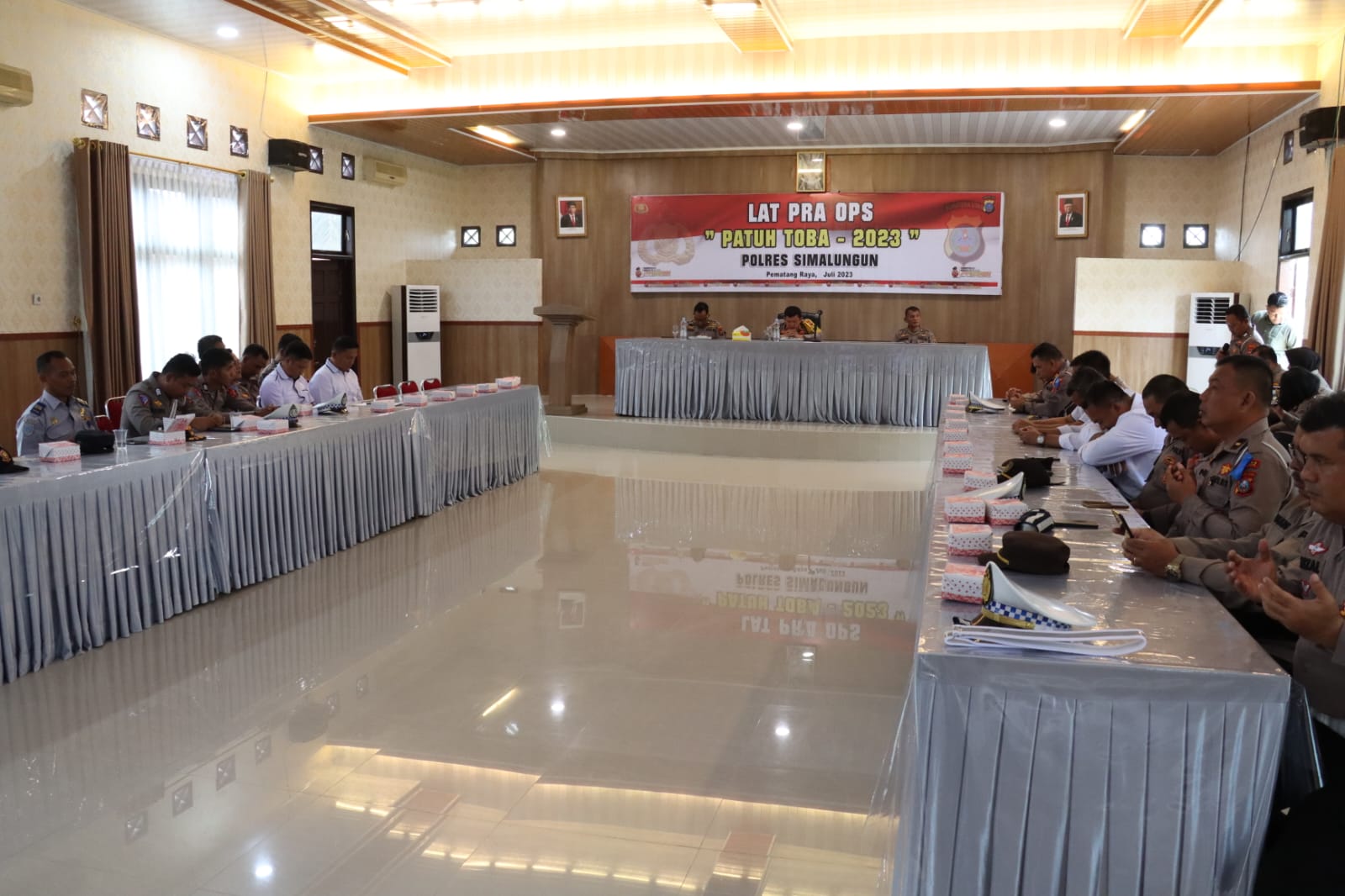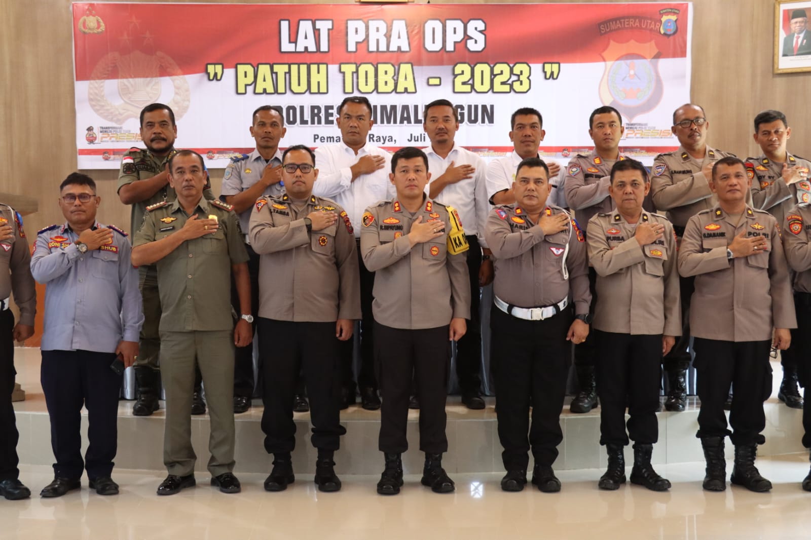 Hadir dalam acara tersebut antara lain Kabag Ops Polres Simalungun Kompol Kristo Tamba, Kabag SDM Polres Simalungun Kompol J.Purba, dan berbagai perwakilan dari perangkat daerah lain seperti Kodim, Denpom, Sat Pol-PP, dan Dishub Kabupaten Simalungun.