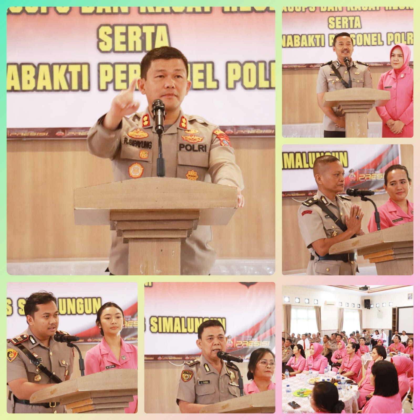 Upacara ini dipimpin secara langsung oleh Kapolres Simalungun AKBP Ronald F.C Sipayung, S.H., S.I.K., M.H., bersama dengan para pejabat senior dan jajaran dari Polres Simalungun. Selain itu, upacara ini juga dihadiri oleh Ketua dan Wakil Ketua Bhayangkari Cabang Simalungun, serta para perwira dan brigadir, serta ASN Polres Simalungun.