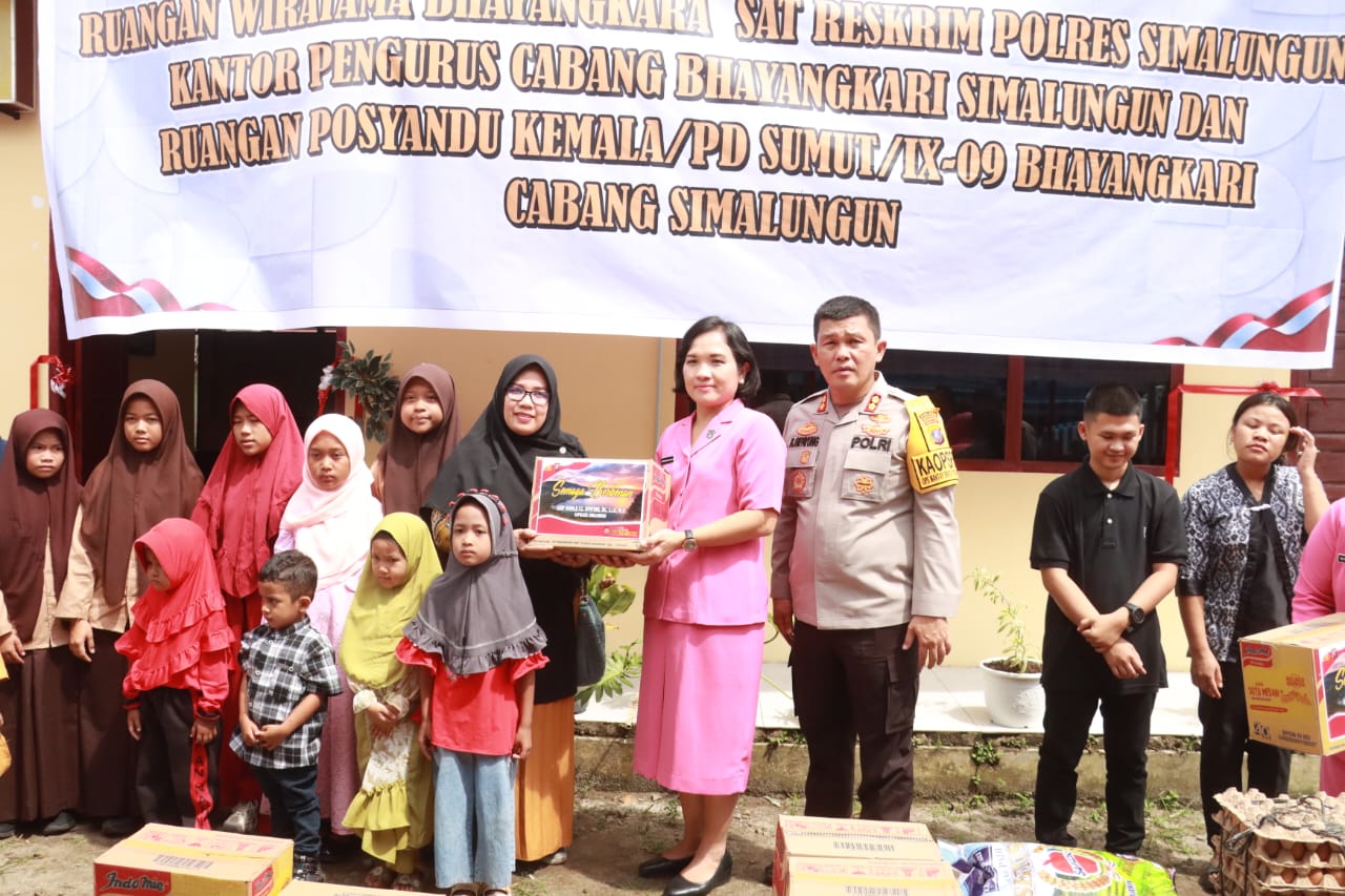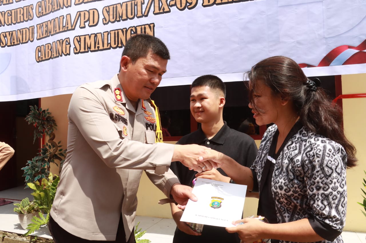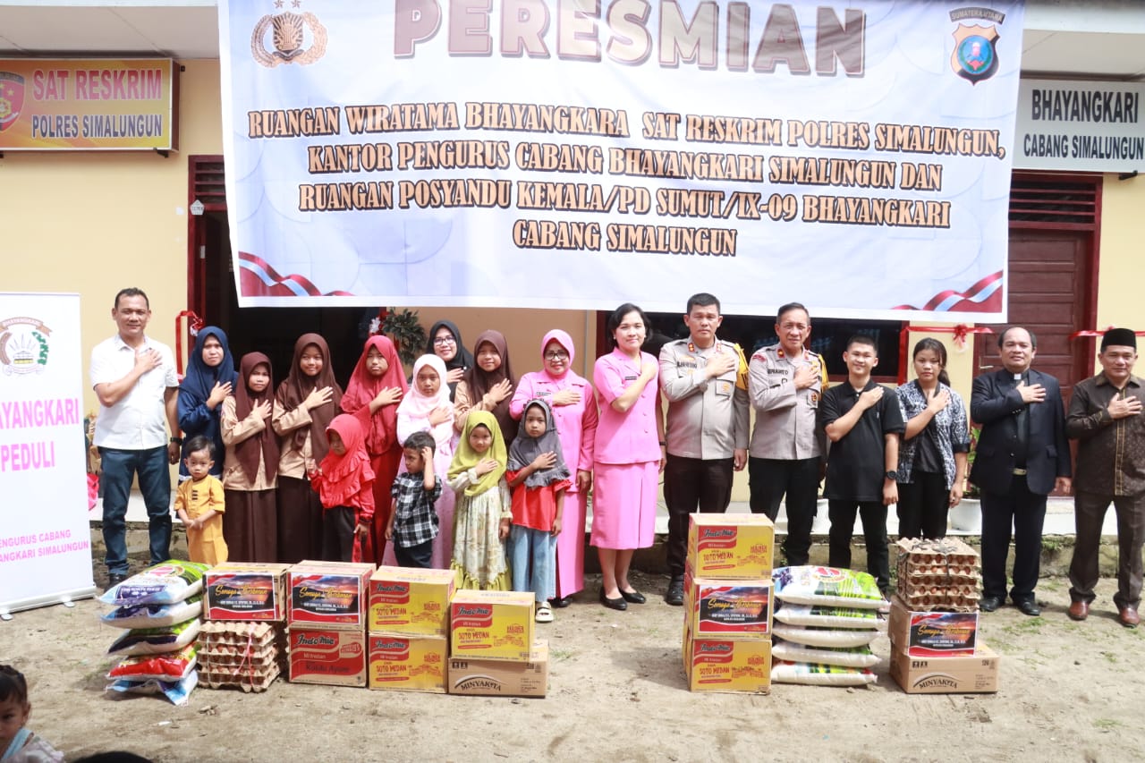 Acara peresmian ini dilakukan secara langsung oleh Kapolres Simalungun AKBP Ronald F.C Sipayung, S.H., S.I.K., M.H., bersama Ketua Bhayangkari Cabang Simalungun Ny. Erika Ronald Sipayung, dihadiri oleh para pejabat dan anggota Polres Simalungun bersama pengurus Bhayangkari, serta masyarakat penerima bantuan dan anak-anak dari Panti Asuhan.