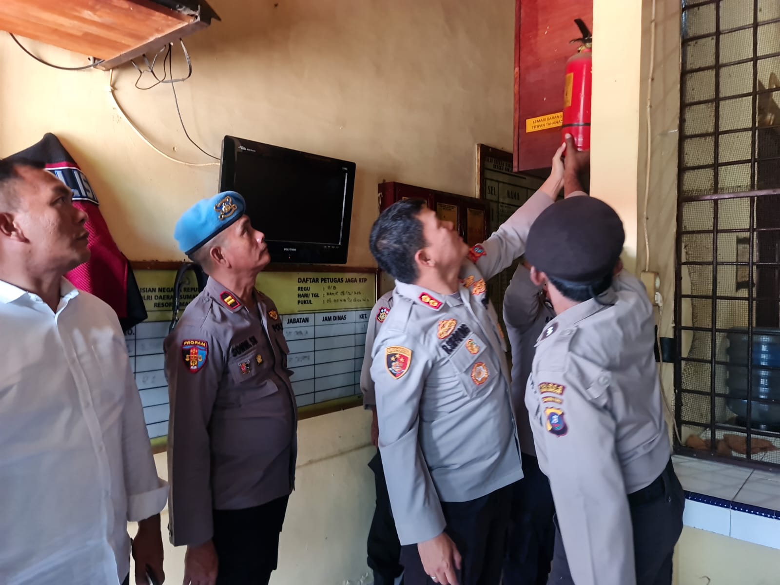 Pengecekan kepada Petugas jaga tahanan juga dilakukan untuk selalu waspada, selalu siaga, dan selalu memperhatikan terhadap para pengunjung yang menjenguk untuk barang-barang bawaan tetap dilakukan pemeriksaan, agar tidak ada barang yang berbahaya yang dilarang bisa masuk kedalam ruang sela tahanan Polres Simalungun.