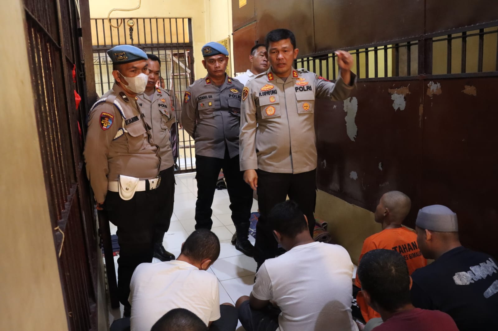 Kepala Kepolisian Resor Simalungun AKBP Ronald F.C Sipayung, S.H., S.I.K., M.H., melakukan inspeksi mendadak (sidak) di RTP (Ruang Tahanan Polres) Simalungun sekaligus melakukan pemeriksaan/ pengecekan terhadap tahanan serta kesiapsiagaan Personel dengan Perlengkapan, Mako Polres Simalungun, Jln.Jhon Horailam Saragih, Kecamatan Pamatang Raya Kabupaten Simalungun. Senin (29/5/2023).