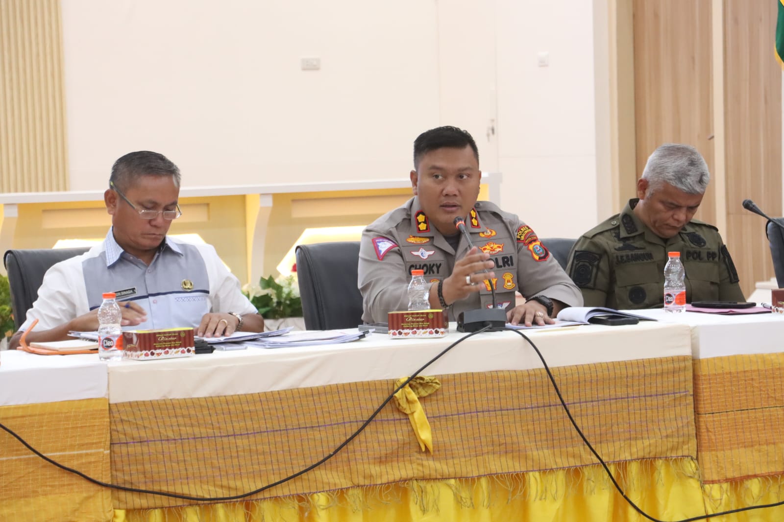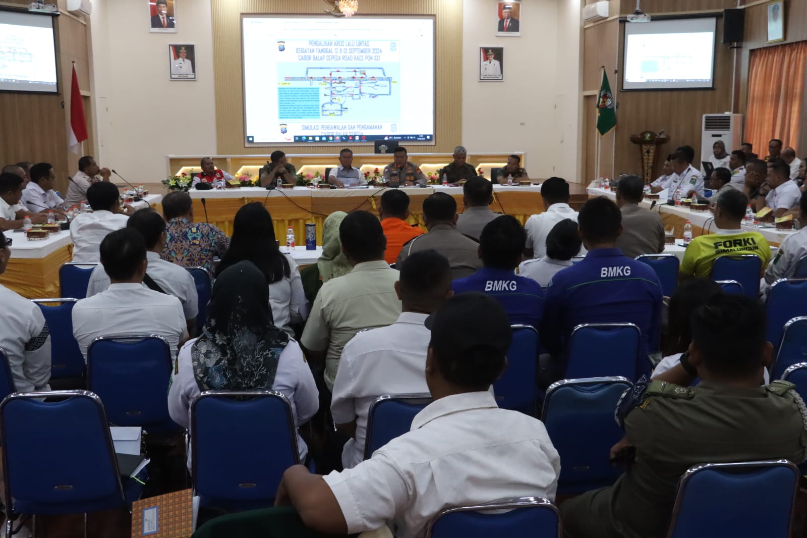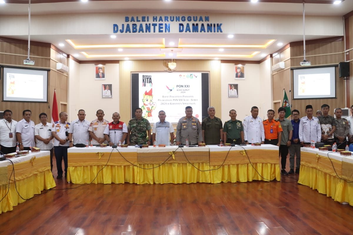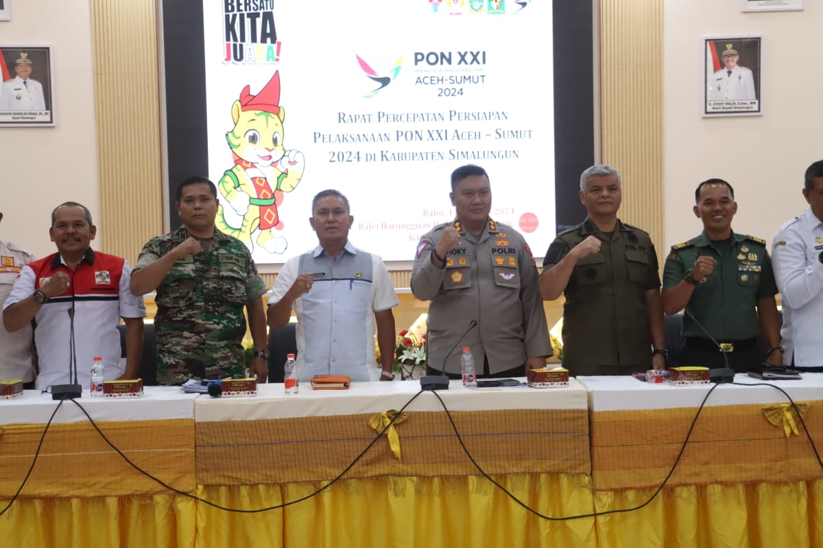 Dalam rangka mempersiapkan pelaksanaan Pekan Olahraga Nasional (PON) XXI Aceh-Sumut 2024 yang akan berlangsung di Kabupaten Simalungun, Kapolres Simalungun, AKBP Choky Sentosa Meliala, S.I.K., S.H., M.H., menekankan pentingnya sinergi antara seluruh stakeholder untuk memastikan kelancaran acara besar ini. Hal ini disampaikan dalam Rapat Percepatan Persiapan Pelaksanaan PON XXI Aceh-Sumut 2024 yang digelar pada hari Rabu, 14 Agustus 2024, di Balei Harungguan Djabanten Damanik, Kantor Bupati Simalungun, Kecamatan Raya, Kabupaten Simalungun.
