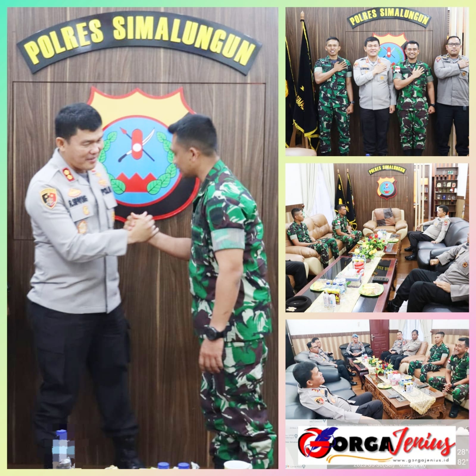 Kapolres Simalungun AKBP Ronald F.C Sipayung, S.H., S.I.K., M.H., menerima Kunjungan Silaturahmi dari Komandan Bataliyon 122/TS Mayor Inf. Diki Apriadi S. Hub.Int, di Ruang Kerja Kapolres Simalungun Mako Polres Simalungun Jln.Jhon Horailam Pamatang Raya Kabupaten Simalungun. Selasa (30/5/2023) sekira Pkl.13.00 WIB.
