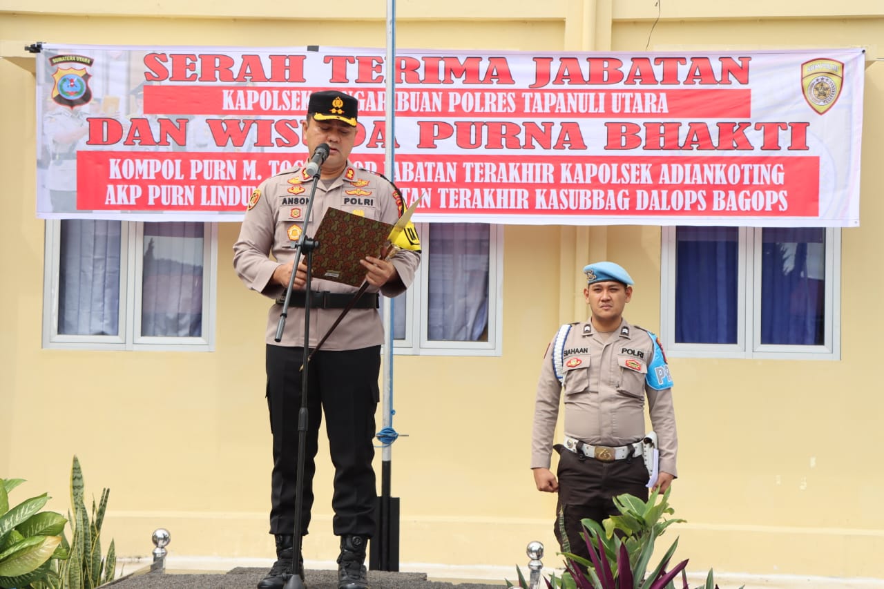 Upacara pelantikan dan purna bhakti tersebut dilaksanakan di Mapolres Taput, Sabtu (2/12/2023).
