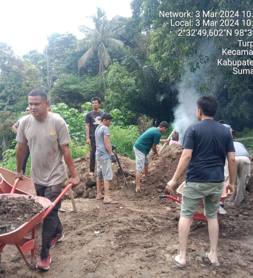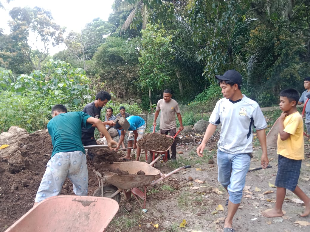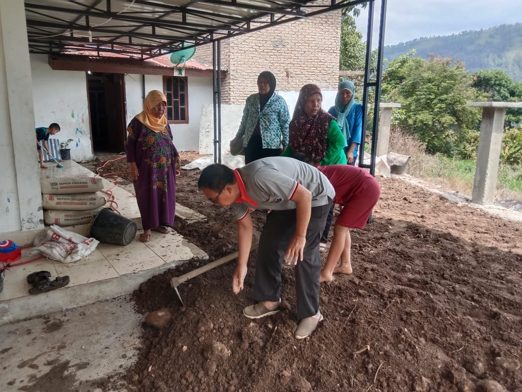 Kegiatan gotong royong tersebut dilakukan dalam rangka pembangunan teras, perbaikan dan menata halaman, pembangunan parkir, dan penyusunan batu penahan tanah lahan.