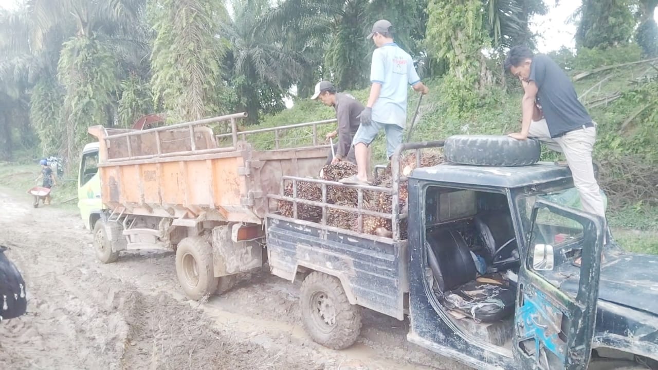 PTPN IV Regional II melalui kebun Bah Birung Ulu Afdeling 3 Panen Perdana Tandan Buah Segar (TBS) Kelapa sawit di Nagori Huta Urung, Kecamatan Jorlang Hataran, Kabupaten Simalungun.