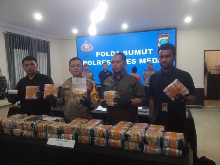 Kapolrestabes Medan, Kombes Pol Teddy Jhon Sahala Marbun menyebut, 53 kg sabu tersebut merupakan hasil penangkapan pada 29 Januari 2024 lalu di Jalan Air Hitam Lintas Pekanbaru.