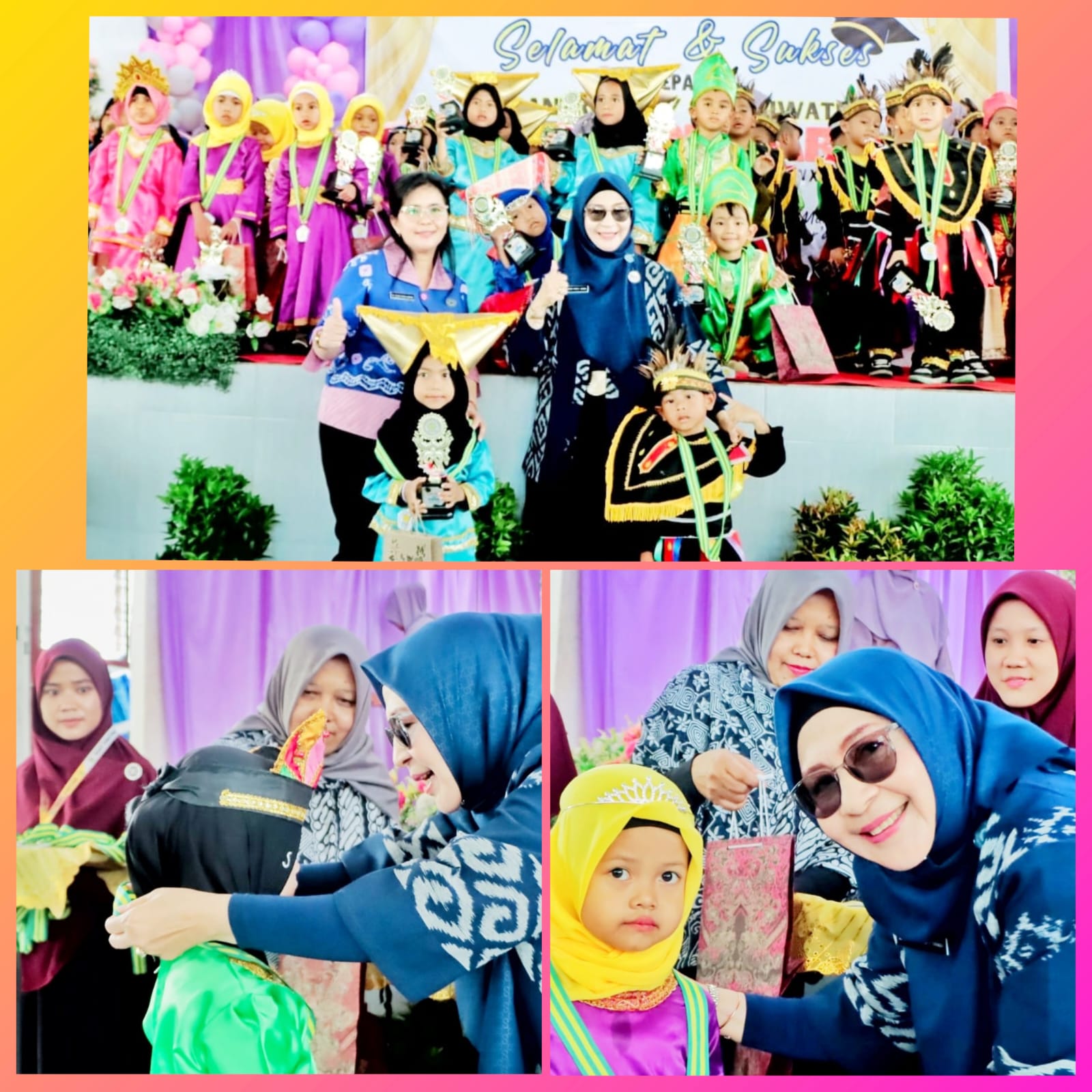 “Saya juga mengucapkan terima kasih kepada ibu para guru pembimbing serta mendidik anak-anak, sehingga atas sentuhan kasih sayang ibu lah anak-anak ini bisa mencapai tahap ini,”ucap Darmawati.