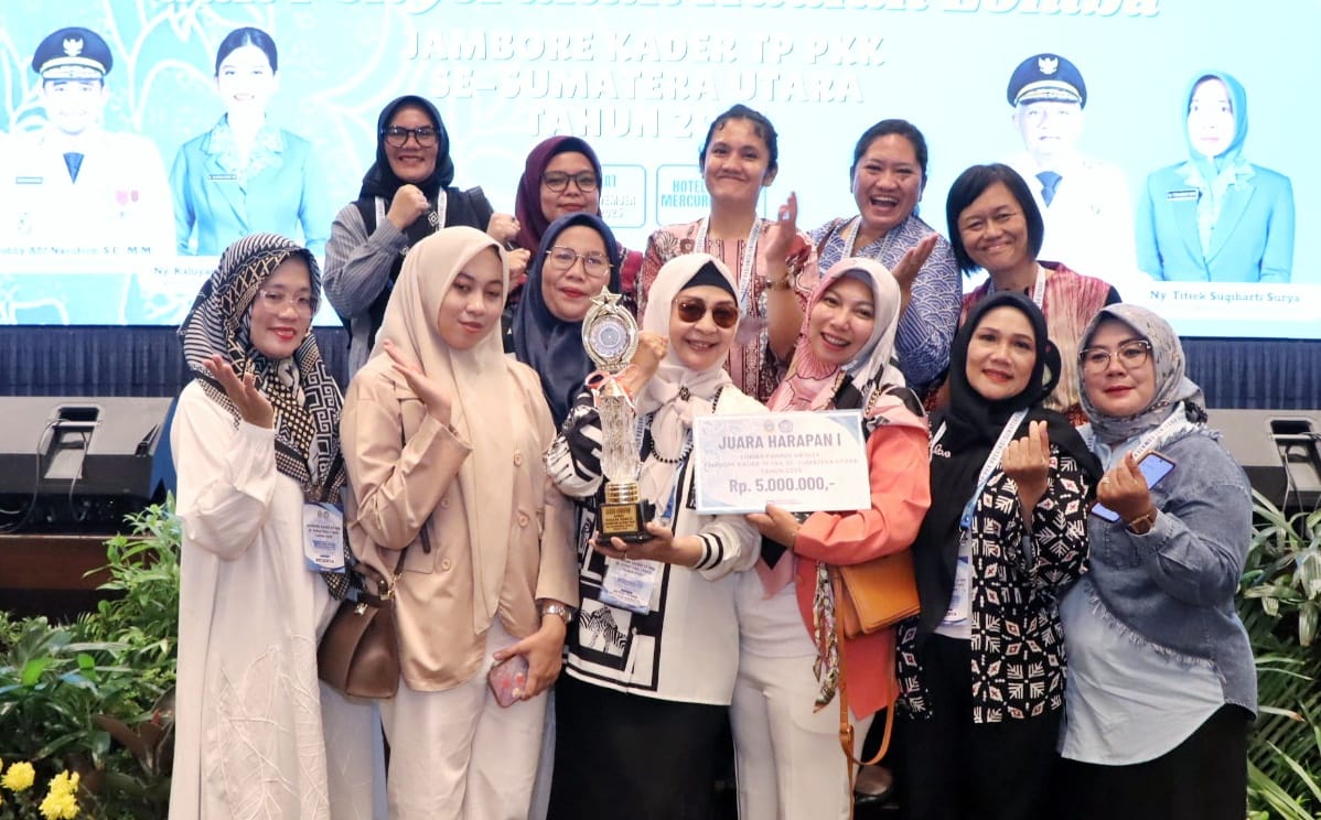 Ketua Tim Penggerak Pemberdayaan Kesejahteraan Keluarga (TP PKK) Kabupaten Simalungun, Ny. Hj Darmawati Anton Achmad Saragih, bersama Staf Ahli II TP PKK Simalungun, Ny. Yulince Mixnon Simamora, dan Sekretaris TP PKK Simalungun, Ny. Juliana Saragih, turut serta dalam Jambore Kader PKK se-Sumatera Utara (Sumut).