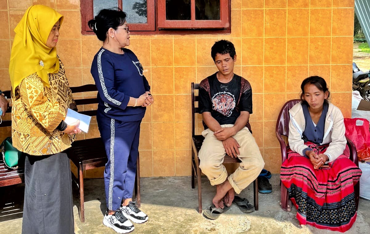 Ketua TP PKK Kabupaten Simalungun Ny Ratnawati Radiapoh Hasiholan Sinaga bersama Plt Kadis Sosial Osnidar Marpaung mengunjungi Korban bencana kebakaran di Nagori Purba Dolok Kecamatan Purba, Simalungun, Sumut, Kamis (28/3/2024).