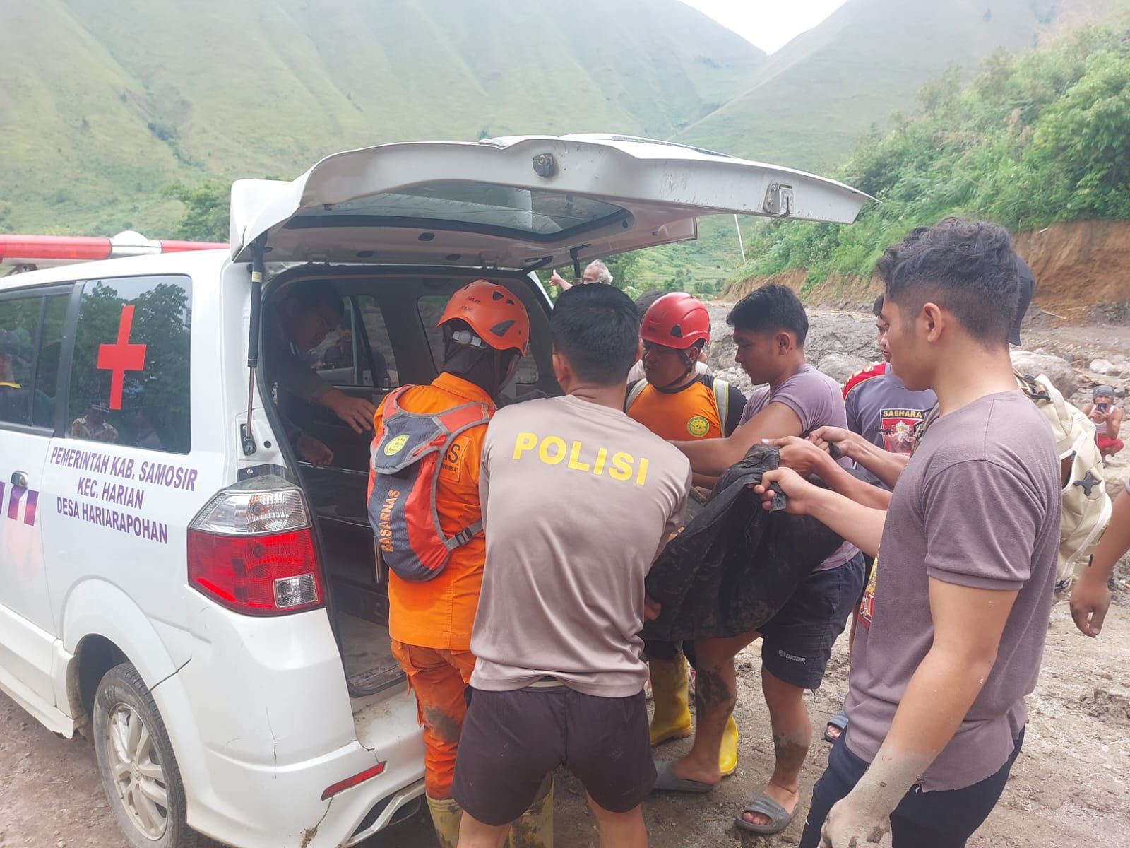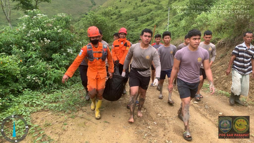 Tim SAR Gabungan yang dikoordinir Basarnas Pos SAR Parapat Danau Toba akhirnya temukan jasad seorang wanita yang terseret Banjir bandang yang melanda sekitar Desa Hariara Pohan Kec. Harian Kab. Samosir – Prov. Sumatera Utara pada Senin, (13/11/2023) lalu.