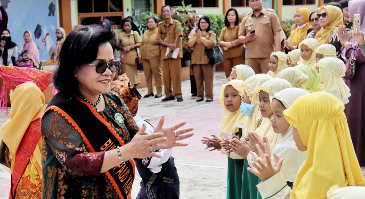 Bunda PAUD (Pendidikan Anak Usia Dini) Kabupaten Simalungun Ny Ratnawati Radiapoh Hasiholan Sinaga melakukan kunjungan ke Taman Kanak-kanak (TK) Aisyiyah Bustanul Athfal (ABA) Perdagangan, Kecamatan Bandar, Simalungun, Sumut, Senin (12/06/2023).