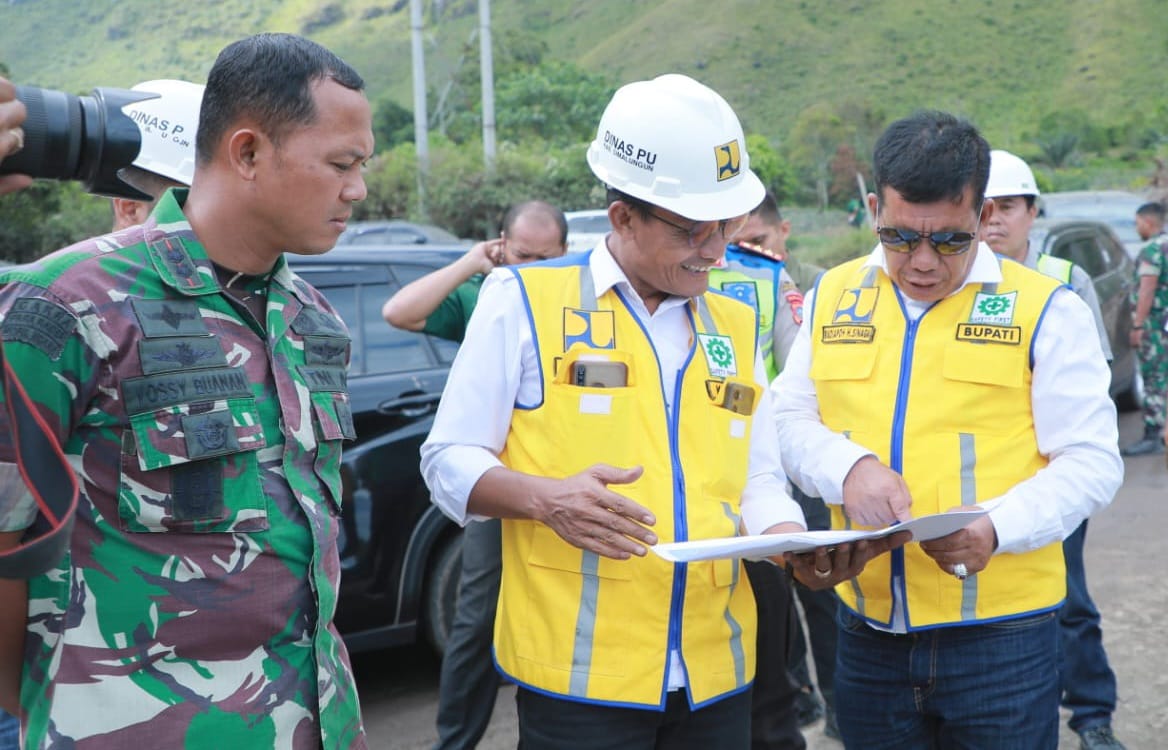 “Kerjakanlah dengan baik, dan tetap jaga kesehatan, agar sehat-sehat juga masyarakat kita yang akan menjalani jalan kita ini,” ujar Bupati kepada para pekerja.