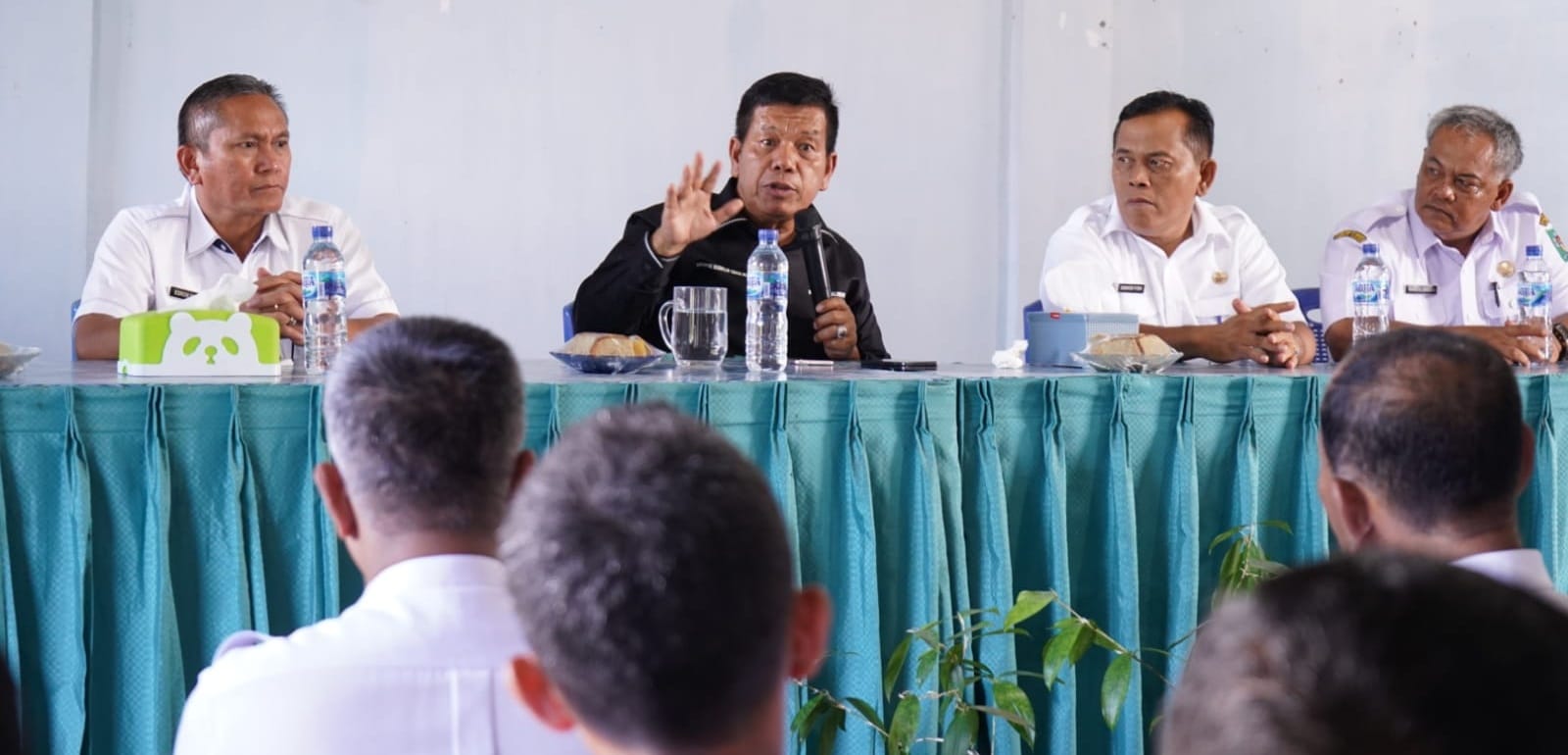 Bupati Simalungun Radiapoh Hasiholan Sinaga melakukan kunjungan kerja sekaligus pimpin Rapat Koordinasi (Rakor) Forkompincam Pematang Bandar, di Kantor Camat Pematang Bandar, Simalungun, Sumut, Rabu (10/1/2024).