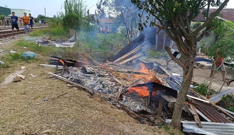 Lapak Judi dan Narkoba Pinggir Rel Dibakar Warga Tembung