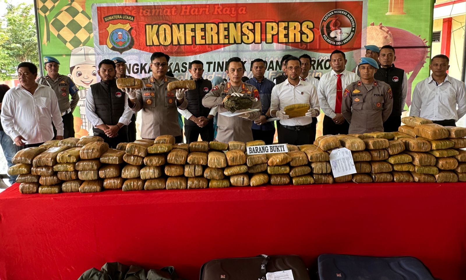 Personil Sat Res Narkoba Polresta Deli Serdang Berhasil mengungkap dan mengamankan Pelaku Penyalahgunaan Narkotika Jenis Ganja yang telah dilakban seberat 173 kg, Senin (22/05/23).