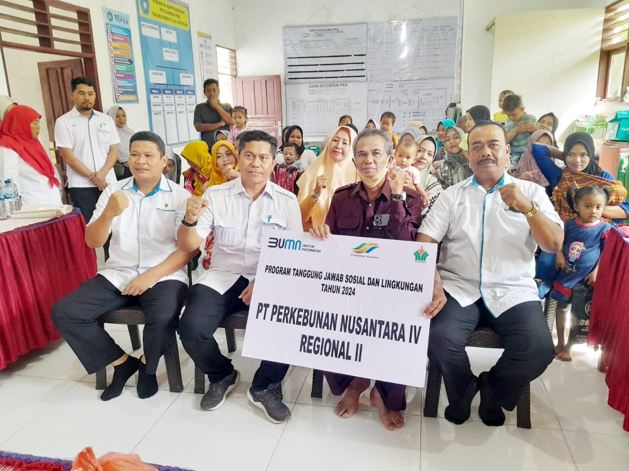 PT Perkebunan Nusantara IV Persero (PTPN IV) melalui Regional II tunjukkan kepedulian kepada warga yang berdomisili di sekitar kebun dan pabrik dengan pemberian bantuan paket Stunting kepada Balita dan ceremoni (sesuai ketersediaan manajer) untuk bulan Maret , April dan Mei 2024 melalui Program TJSL (Tanggung Jawab Sosial dan Lingkungan.
