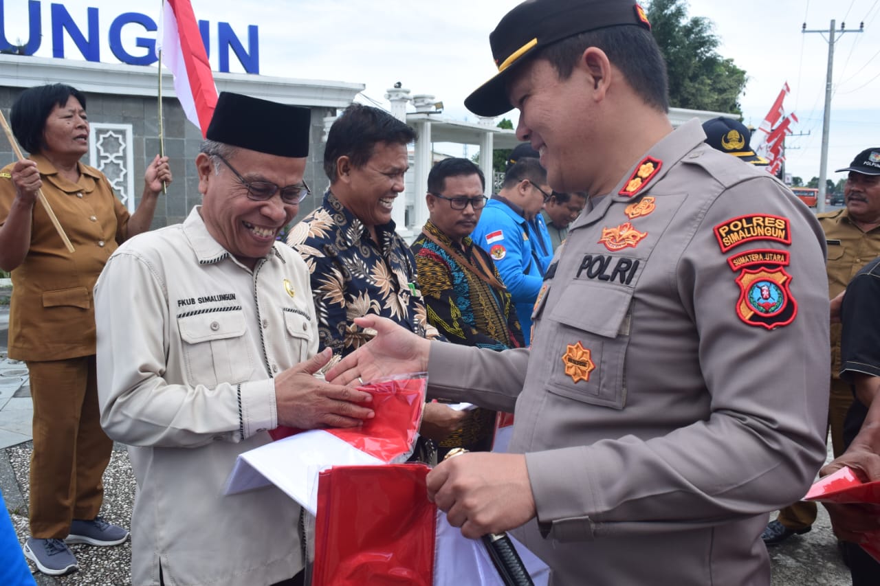 Dalam sambutannya, Kapolres Simalungun menyampaikan pentingnya ikut serta dalam memeriahkan HUT RI ke-78 dan program pembagian 10 juta bendera merah putih. Pemerintah Daerah Kabupaten Simalungun juga turut berpartisipasi dengan membagikan 500 bendera merah putih kepada seluruh masyarakat Simalungun sebagai ajakan untuk ikut memeriahkan perayaan kemerdekaan tersebut.