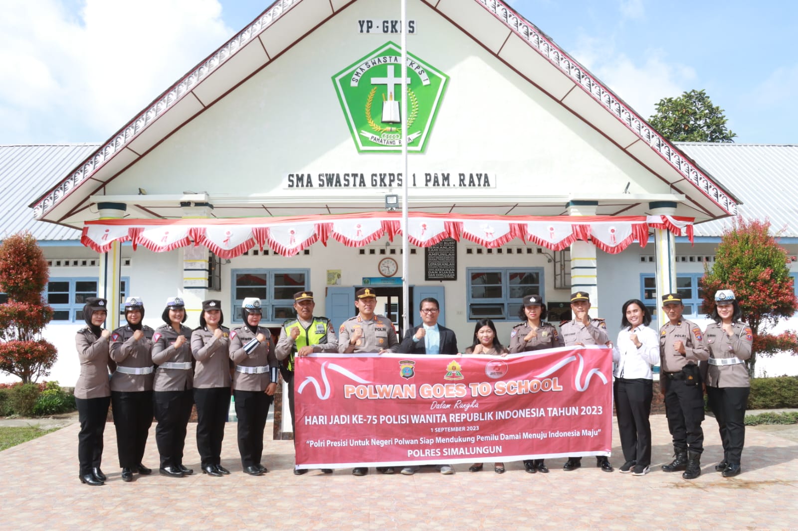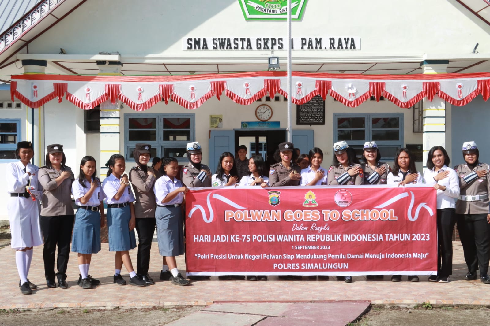 Menjelang peringatan hari jadi Polwan Republik Indonesia yang diperingati pada tanggal 1 September setiap tahunnya, Personel Polwan Polres Simalungun menggelar kegiatan Polwan Goes To School, di Yayasan Pendidikan SMA Swasta GKPS 1 Pamatang Raya, Jalan Guru Jason Saragih, No.03 Sondi Raya, Kecamatan Raya, Kabupaten Simalungun. Jumat (11/8/2023) sekira Pkl.07.30 WIB.