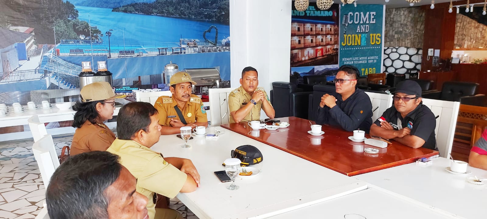 Kemitraan insan Jurnalis yang tergabung di WAGrup Net Parapat PERS duduk bersama sekaligus ‘Ngopi Darat’ bersama Camat Girsang Sipangan Bolon dengan Pangulu dan Lurah di Grand Tamaro Hotel Parapat, Selasa (11 Juli 2023).