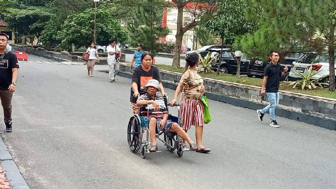 Korban didorong menggunakan kursi roda. Istri korban, Ernawati Siregar mengatakan, mereka melaporkan oknum personel Brimob Polda Sumut berinisial RGH.RGH diduga orang yang membuat suaminya lumpuh hingga tak bisa mencari nafkah lagi.