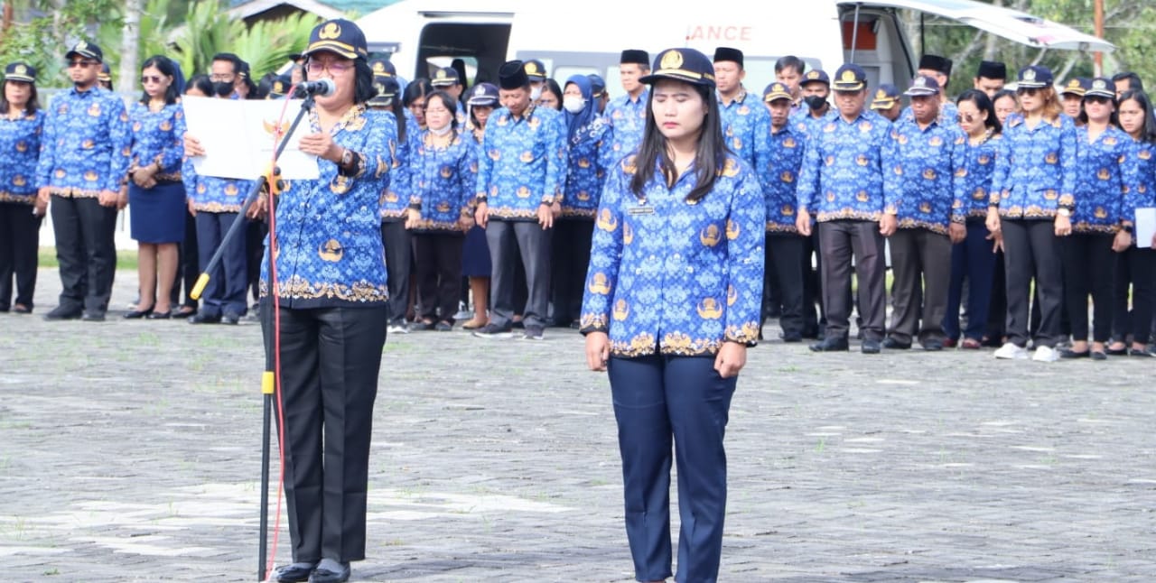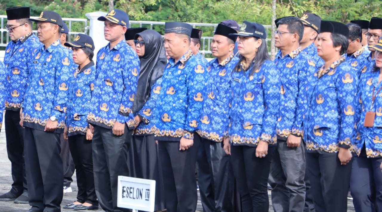 Selanjutnya Pembacaan Pembukaan UUD 1945 dilaksankan oleh Tiurma Marbun (ASN Dinas Perpustakaan dan Arsip) dan pengucapan Panca Prasetya Korpri dilakukan oleh Elly Ermawati Sagala (ASN BPKPD).