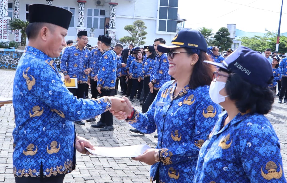 Bupati Simalungun dalam amanat tertulisnya yang di bacakan oleh Sekda mengucapkan selamat kepada para ASN yang menerima SK Pencantuman Gelar.