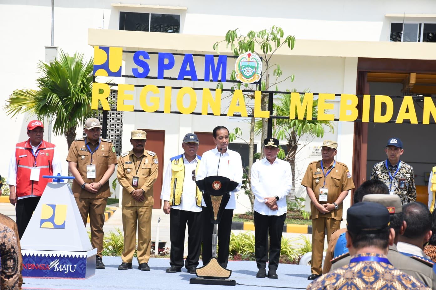 Di sana, Kepala Negara hadir untuk meresmikan proyek SPAM (Sistem Pengolahan Air Minum) Regional Medan-Binjai-Deliserdang (Mebidang).